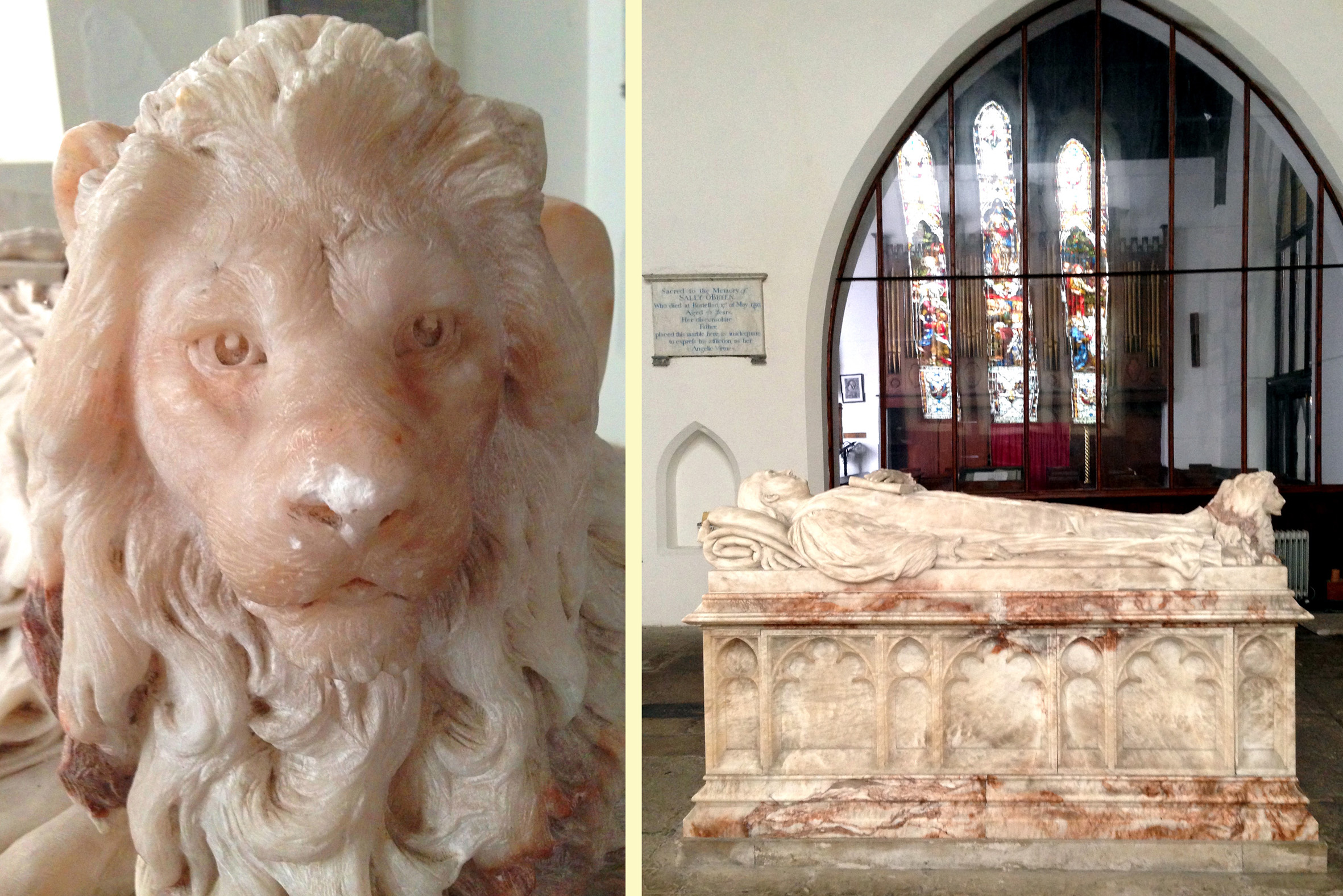 Finally, we arrived back at the Cathedral. I’m always a little disappointed by restorations – particularly those which were carried out in Victorian times; nevertheless there are some impressive features. The possibly twelfth century font is one of them (below left), and another has to be the hidden Sheelagh-na-gig under the lip of Bishop Wellesley’s tomb (below right). I reached under to feel this little carving, and was then told by the Cathedral’s guardian that anyone who touches the effigy is ensured everlasting fertility!