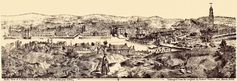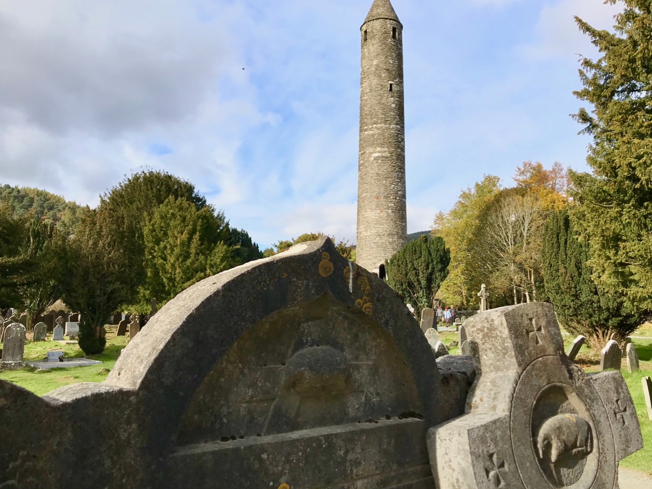 The print above – dating from 1788 – shows the ruins of St Brigid’s Church, which was fully restored as a Church of Ireland Cathedral a hundred years later. We looked down on this from our vantage point atop the Tower – and had a good view of the (also restored) Fire Temple where a perpetual flame, lit by the Saint, was kept burning for hundreds of years, finally being extinguished by the shenanigans of Henry VIII.