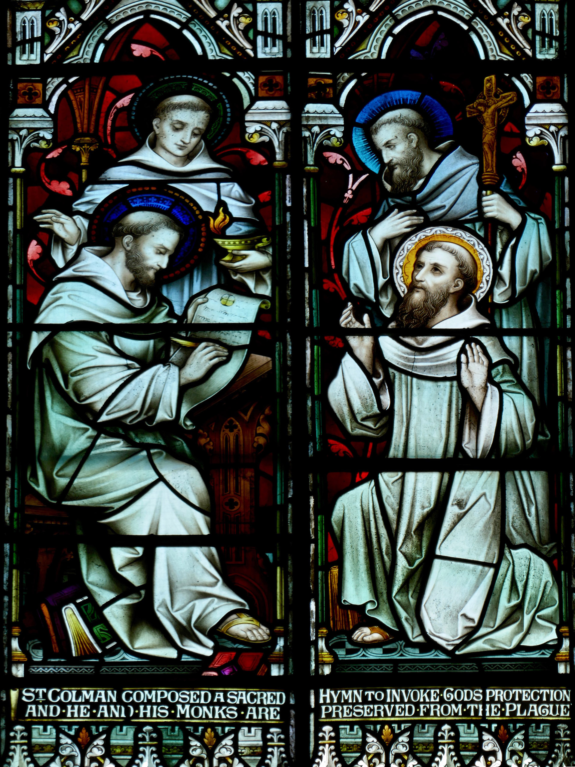This went on for two weeks. The Saint grew thinner and weaker, and the cook grew more and more worried. And then, all of a sudden, Saint Columbus started to put on weight again and the worried look left the cook’s face. The devoted lay brother had made himself a hollow potstick down which he poured milk and oatmeal. Thus he was able to preserve his master from starvation and himself from the horrible sins of disobedience and lies.