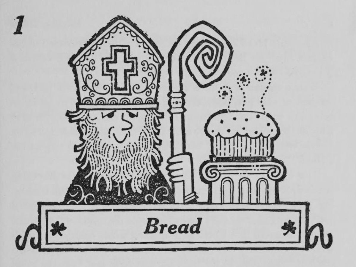 Now, as my readers know, I love a good saint. Briscoe’s reference was irresistible and sent me searching through the book for all the saintly references. I found lots of them! Before I get to the Saints though, I thought you might like a rundown on some of the traditional Irish recipes we don’t hear much about nowadays. After reading the list you might feel there are good reasons for that.