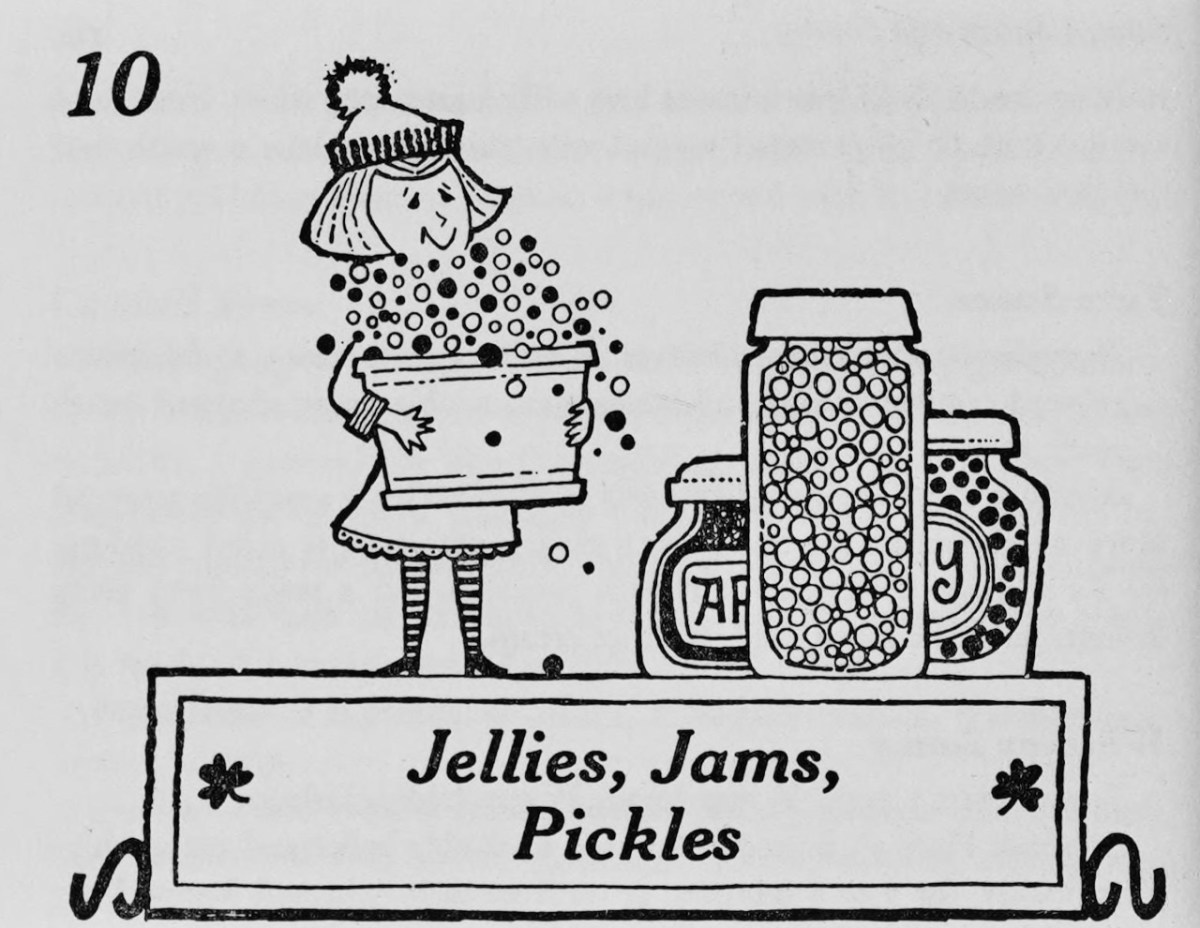 As with other traditional Irish cookbooks (see this post about Monica Sheridan for example) every piece of an animal is used. There are recipes for Brawn, Cock of the North, Coddled Coneen, Griskins, Haslett, Pig’s Cheek, Trotters, and Tripe. There’s a bewildering variety of jams, jellies, scented jellies, marmalades and chutneys.