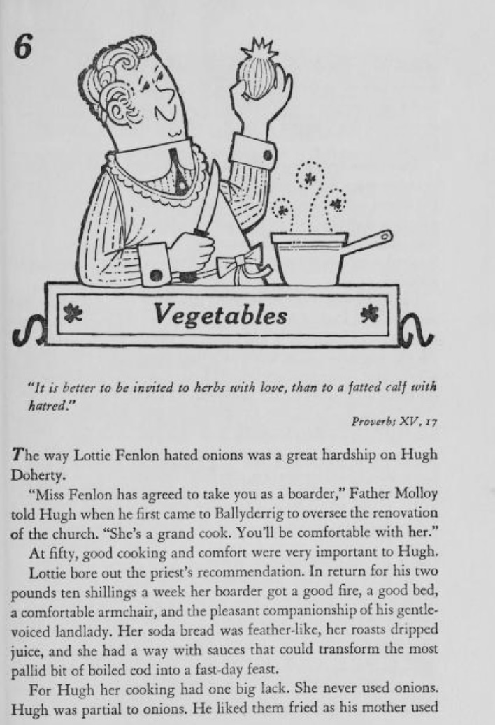 Each chapter is preceded by a story, mostly around the theme of food being the way to a man’s heart, and that age, girth or criminal records were no impediments to true love. I leave you with the one with which she introduces the vegetable chapter.