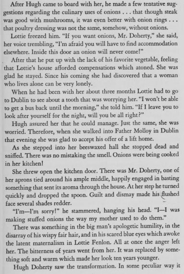 “Is nothing else to go into it, your reverence?” asked the cook in horror. “Nothing except what comes out of the potstick,” the Saint replied sternly.