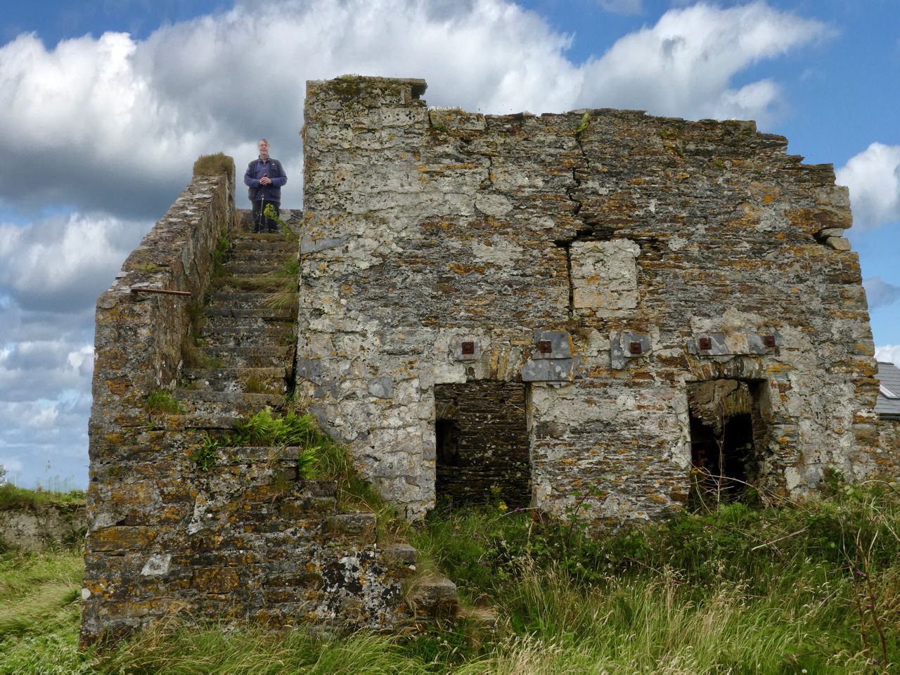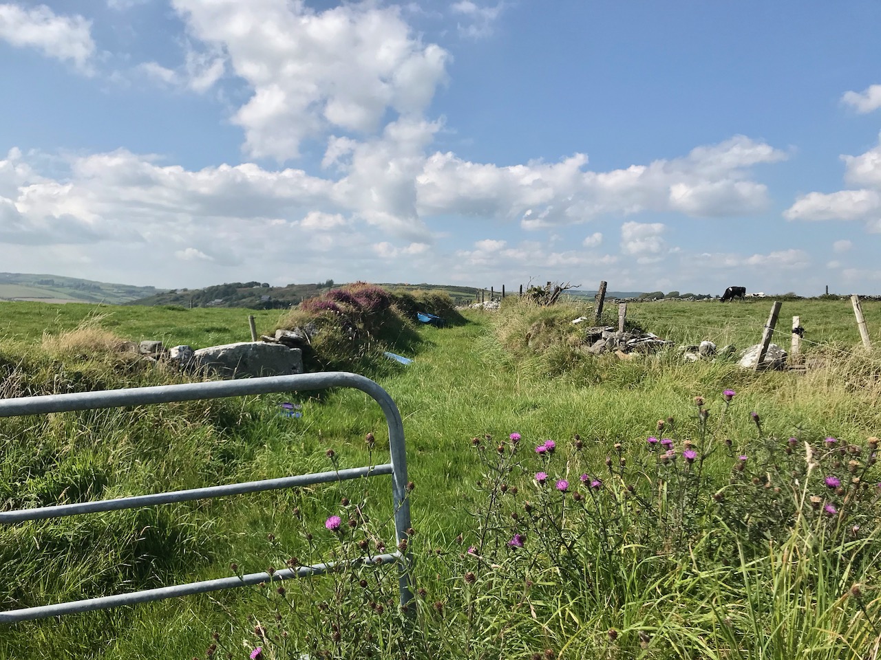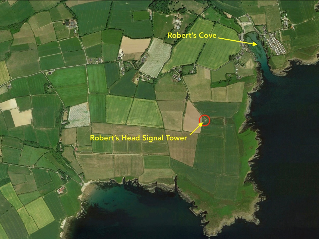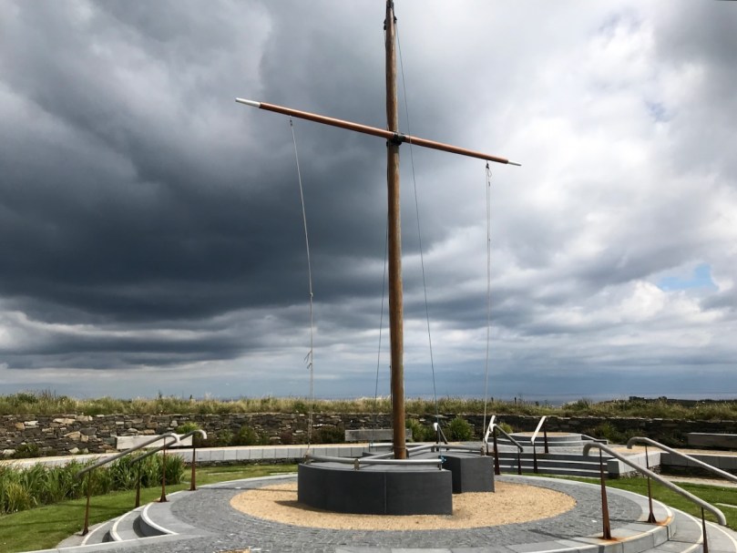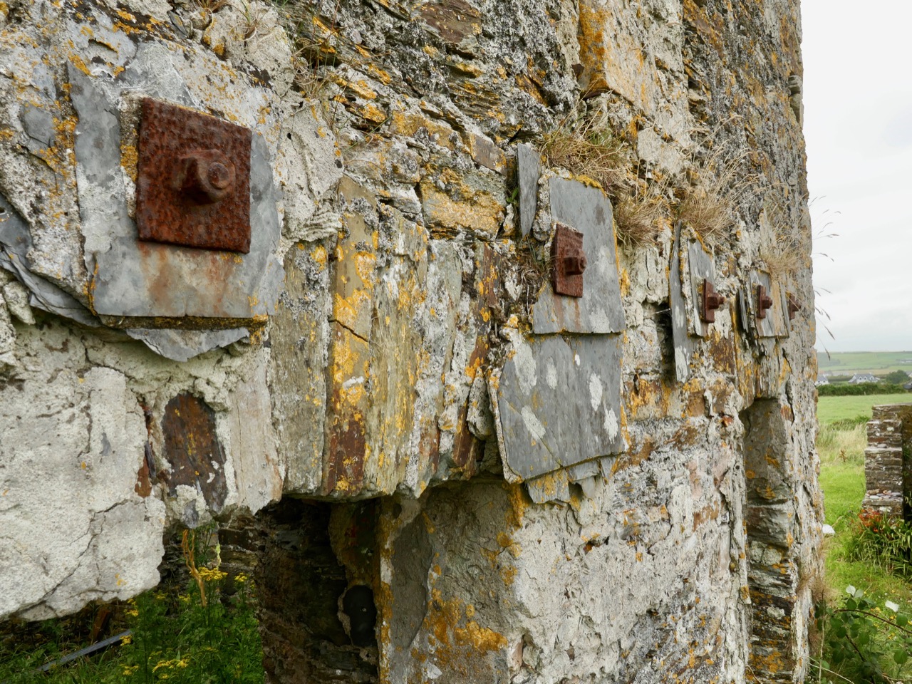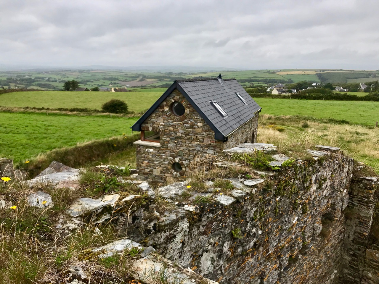 What might it be? A mine chimney? But the Mizen Head Copper Mine was a long way from here (refer to the annotated aerial view). The size and shape resemble a gunpowder magazine which we came across at Dhurode Mine, on the north side of the peninsula. The only reason for having a gunpowder store at a signal station would be for a fog signal operated by explosives, as was the case at the Fog Signal Station lower down the Head, built in the early twentieth century. This is clearly much earlier. The dreamer in me pictures, rather, a hut lived in by a medieval hermit, supported by a local monastic settlement to keep beacons burning on Ireland’s headlands in perpetuity. Like the round towers, these were signals to travellers in ancient times that here might be found a haven. For seafarers, perhaps, this one signalled the gateway to a fertile land of enlightenment.