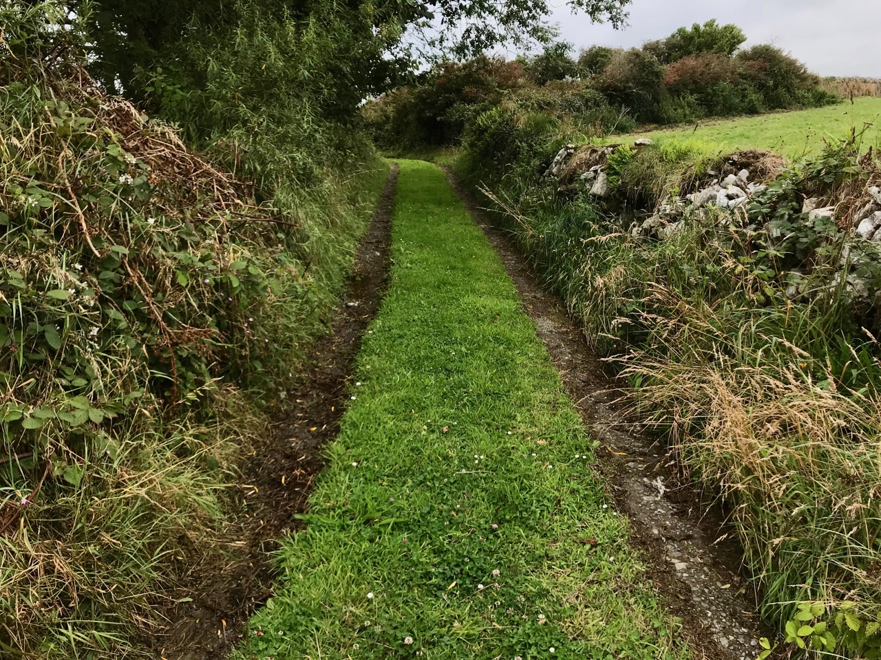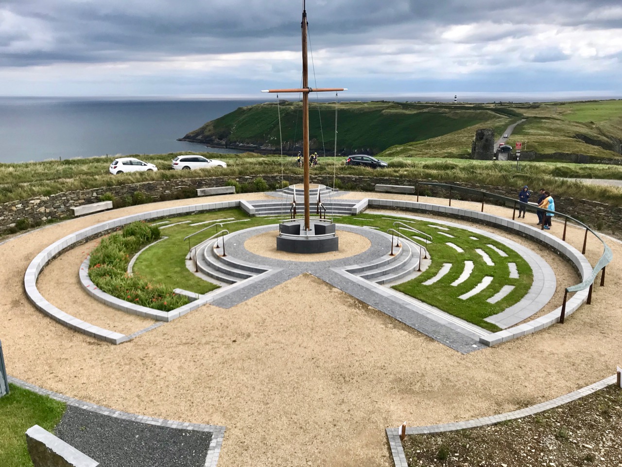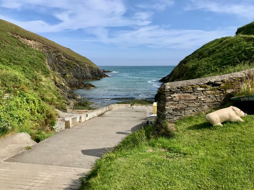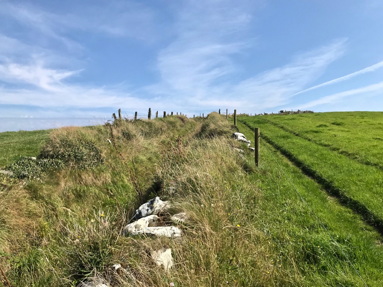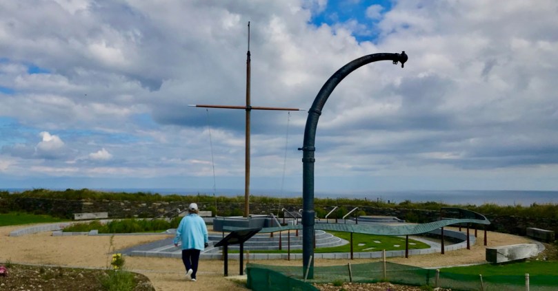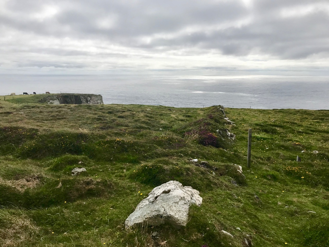 What might it be? A mine chimney? But the Mizen Head Copper Mine was a long way from here (refer to the annotated aerial view). The size and shape resemble a gunpowder magazine which we came across at Dhurode Mine, on the north side of the peninsula. The only reason for having a gunpowder store at a signal station would be for a fog signal operated by explosives, as was the case at the Fog Signal Station lower down the Head, built in the early twentieth century. This is clearly much earlier. The dreamer in me pictures, rather, a hut lived in by a medieval hermit, supported by a local monastic settlement to keep beacons burning on Ireland’s headlands in perpetuity. Like the round towers, these were signals to travellers in ancient times that here might be found a haven. For seafarers, perhaps, this one signalled the gateway to a fertile land of enlightenment.