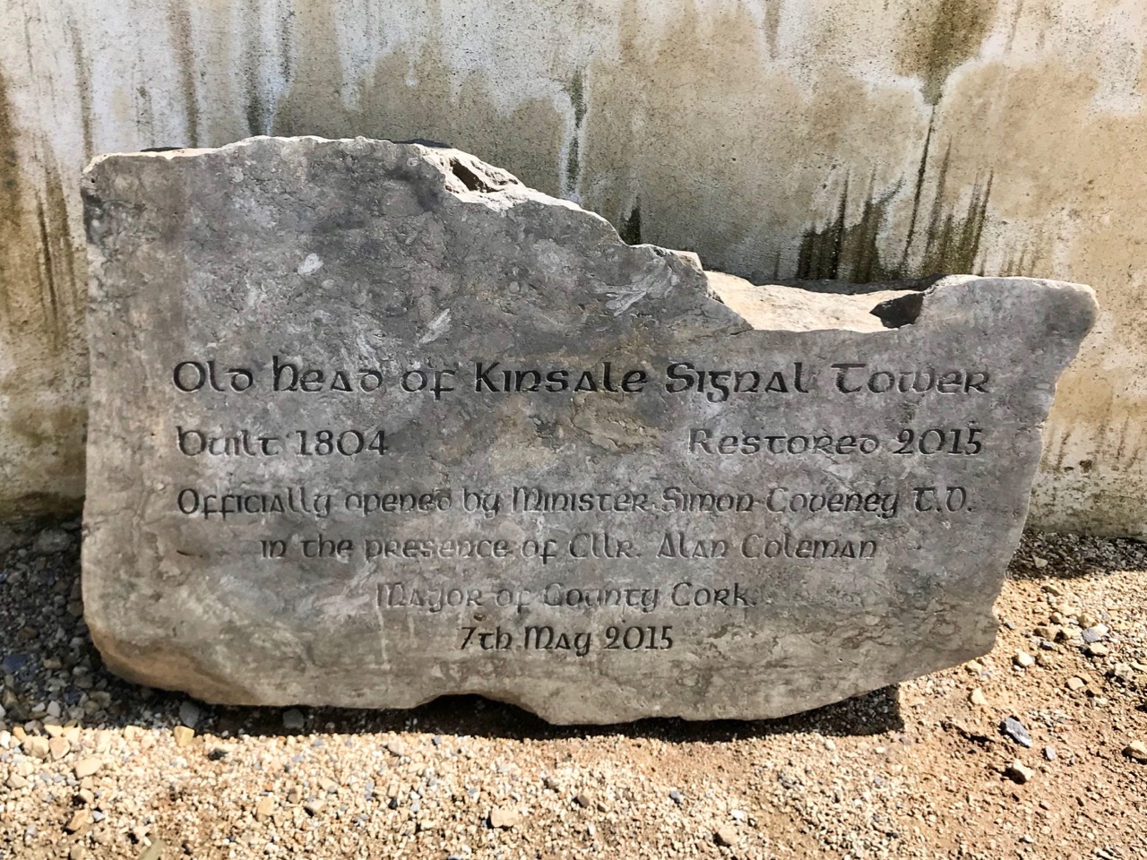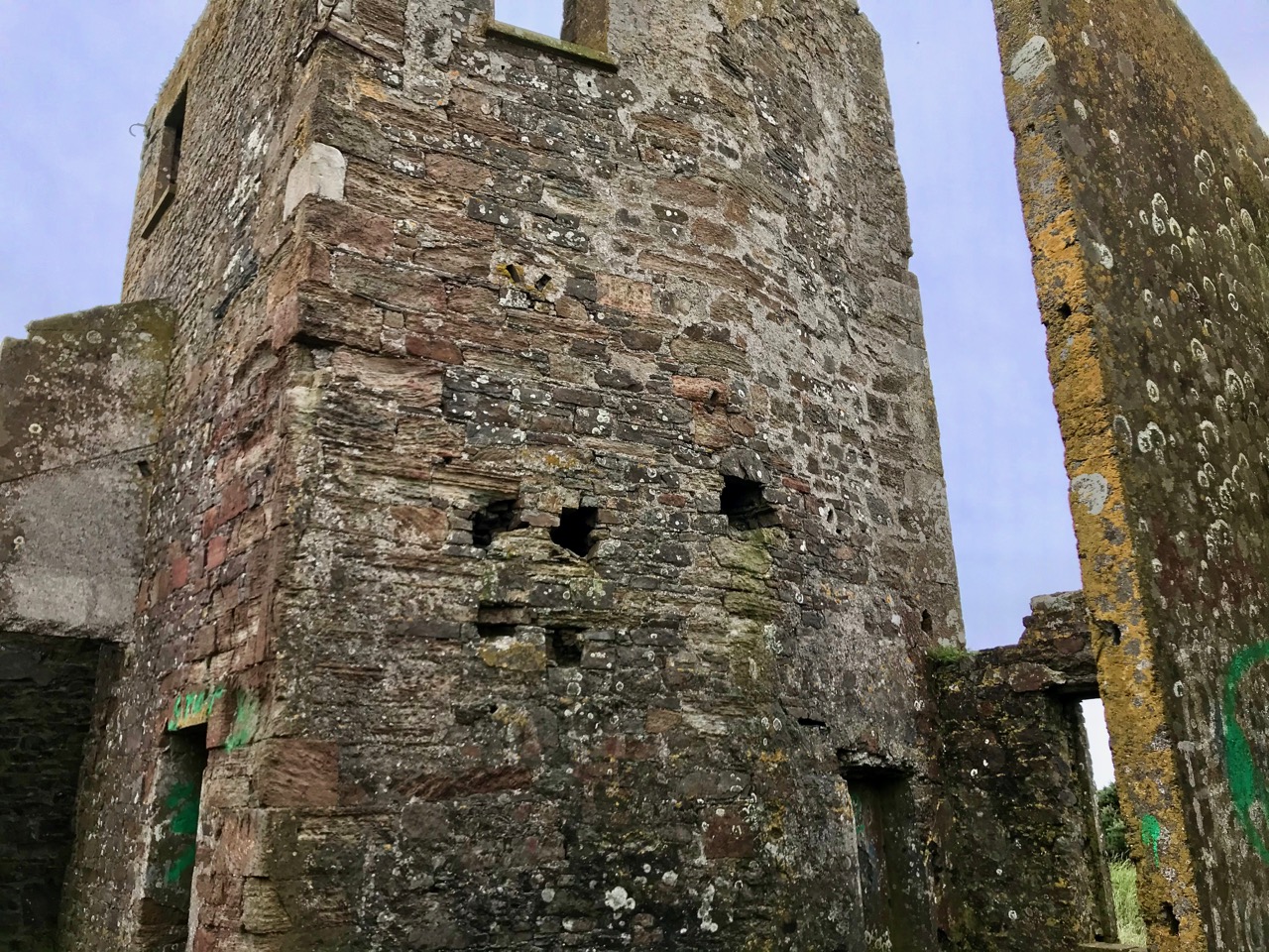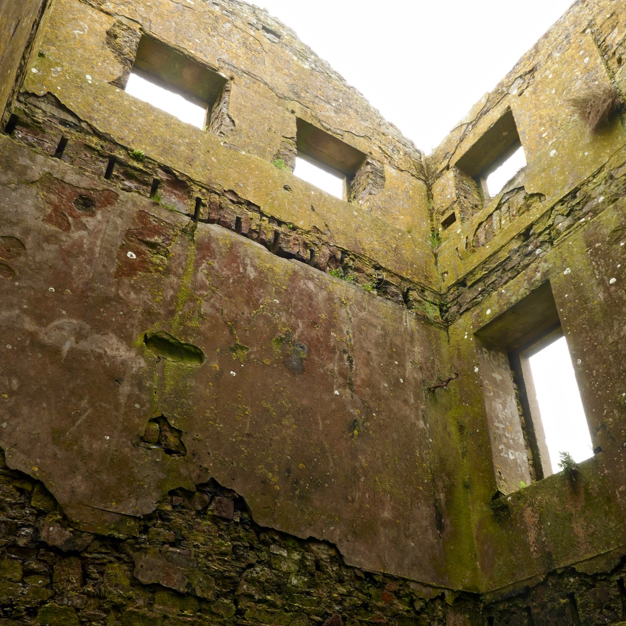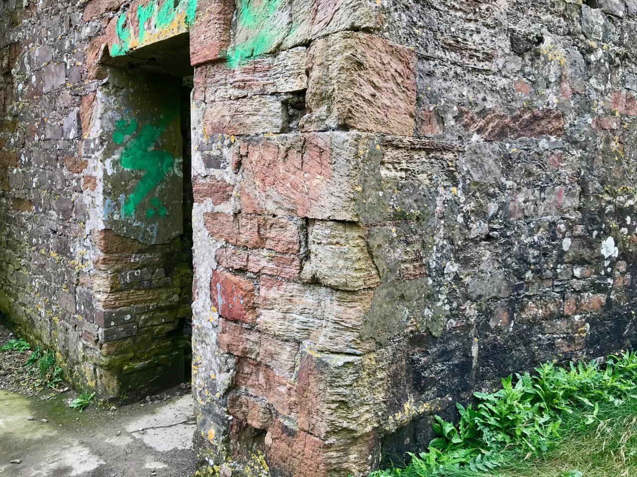 The signal tower at Cloghane is in reasonable condition considering its age and the long period of abandonment (many of the towers went out of use after 1812 although some – possibly including this one – were revived and adapted for use by the Coast Guard). Many visitors have left their marks over the years, and some of the graffiti is intriguing! There is also some vestige of the timber casement frame remaining in one of the window openings: surprising considering the level of exposure to severe storms at this remote site.