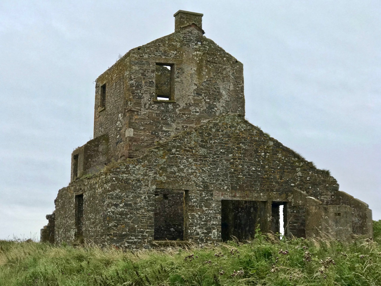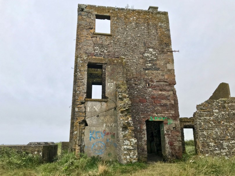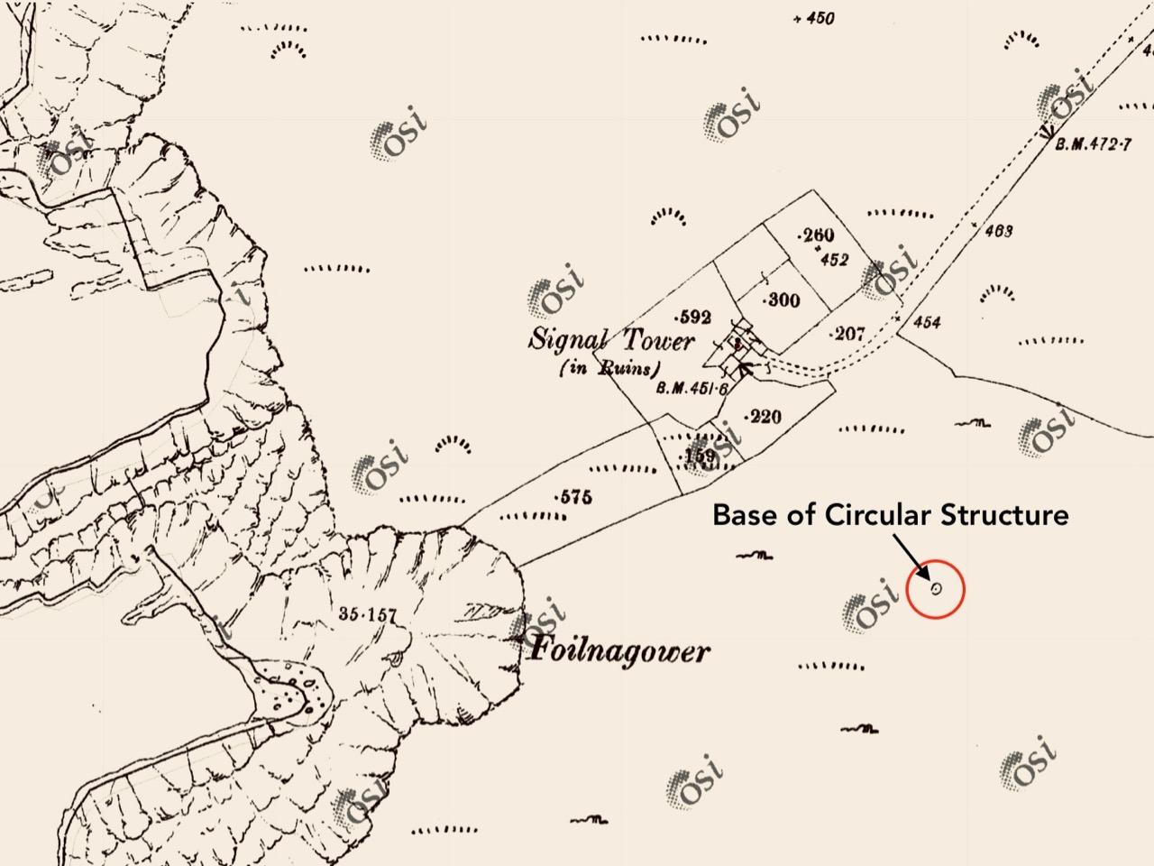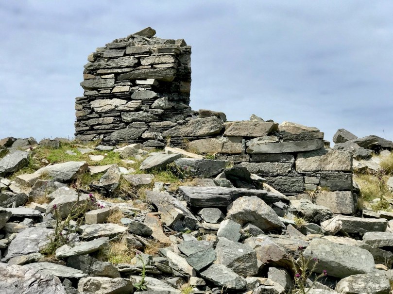 It’s the base of a circular building, or enclosure – a few metres in diameter. Archaeologists amongst you might think in terms of round towers but we can discount that in this desolate location. It does not seem to relate to the signal station buildings, either in terms of architecture (it gives the impression of being rougher and, perhaps, earlier) or usage. With regard to its age, it shows up as a feature on the early 6″ Ordnance Survey map: