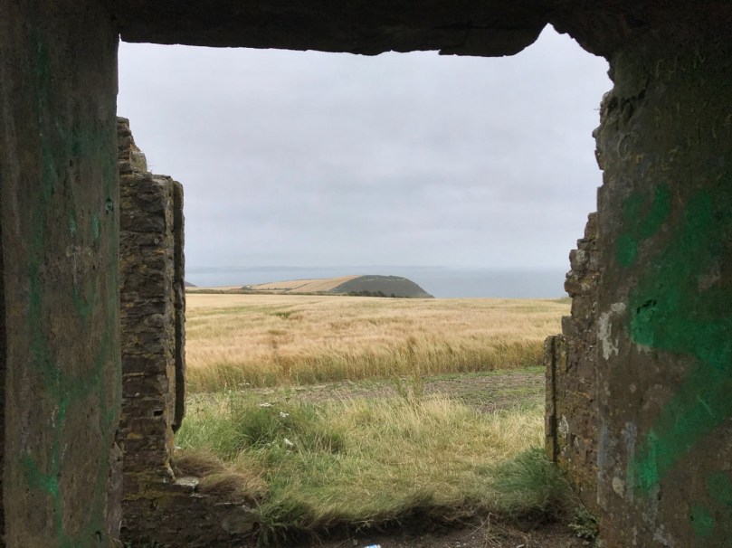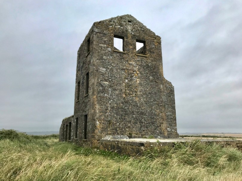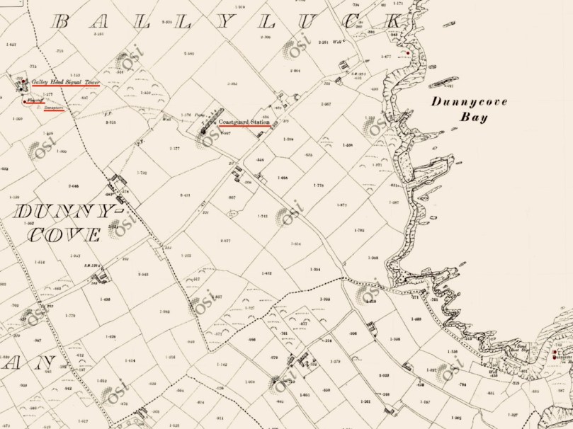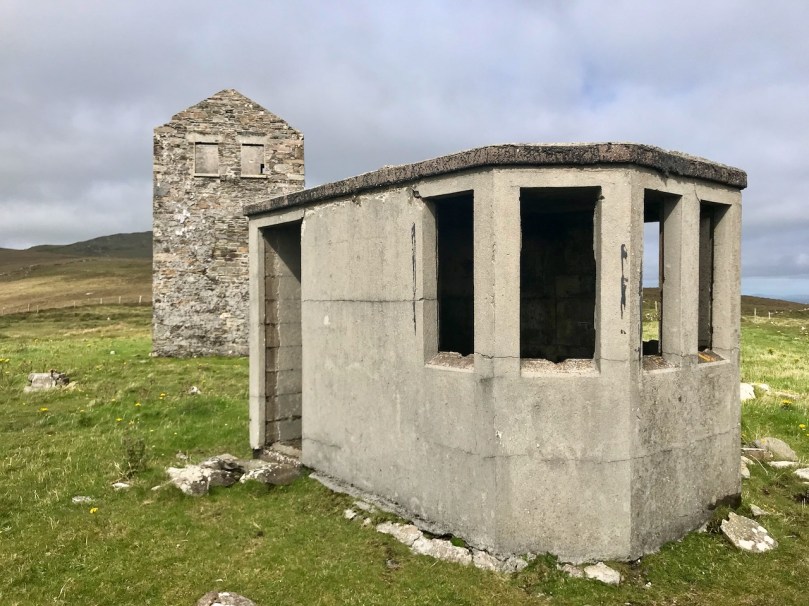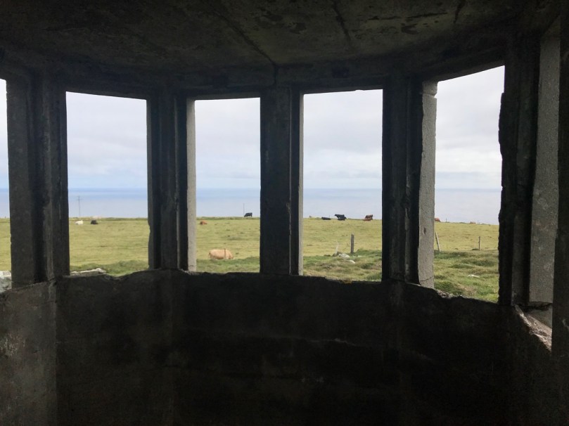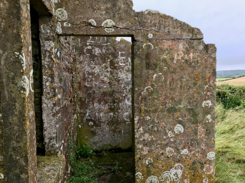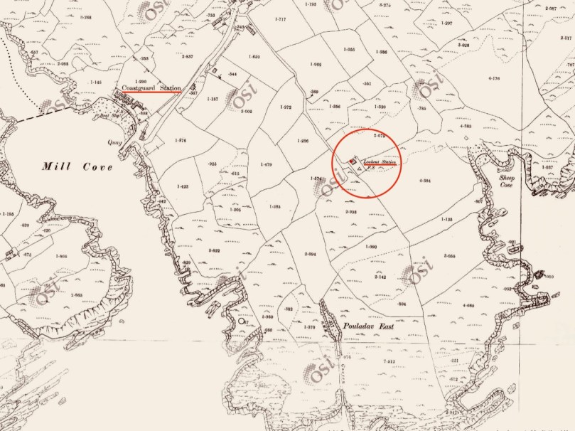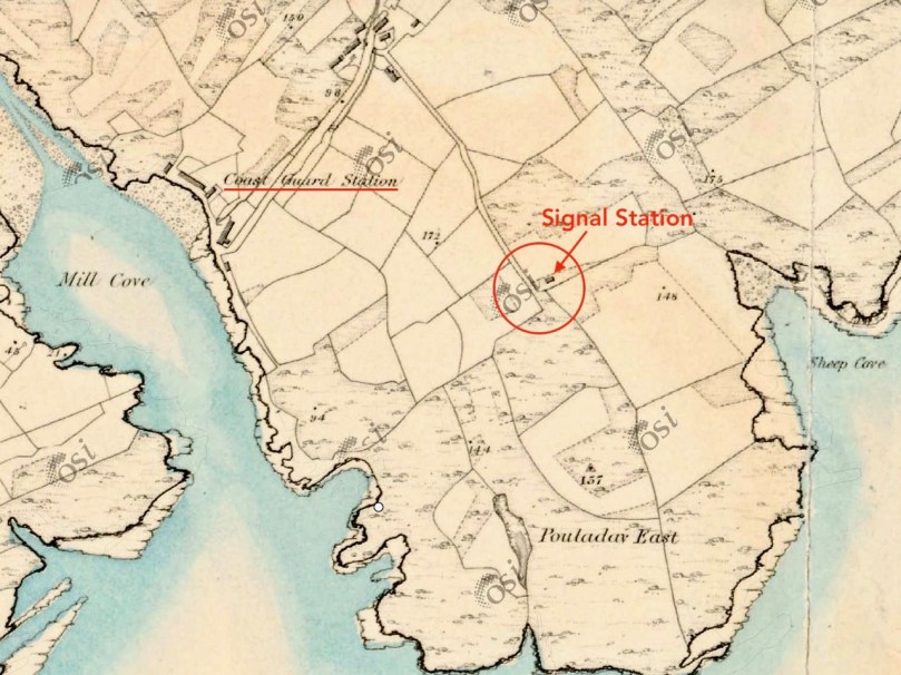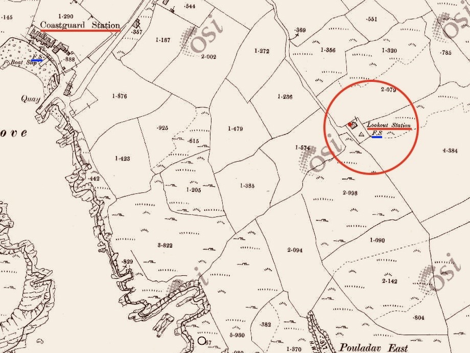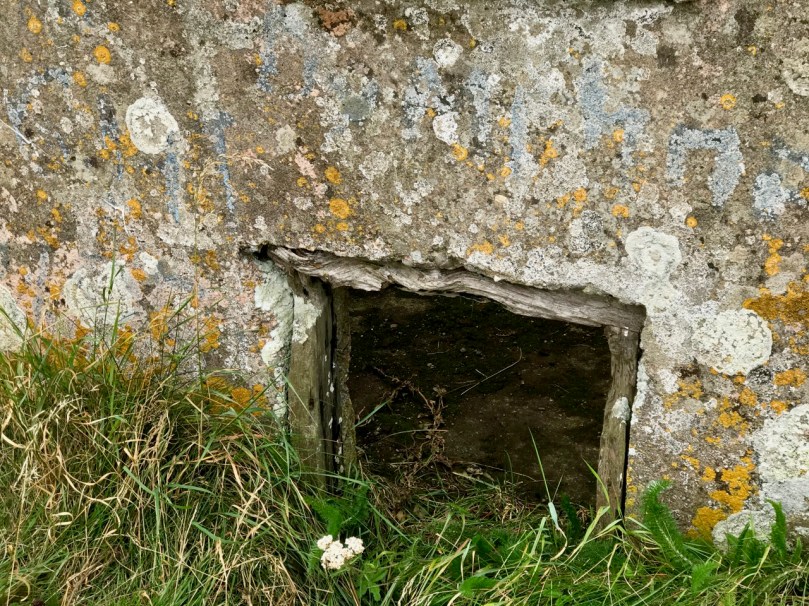 A feature at Cloghane which doesn’t show up on the aerial view is this Second World War lookout post, built close to the early signal tower around 1942. 83 of these structures were built by the Irish Defence Force to monitor activity at sea, many of them relating to Napoleonic-era sites for obvious reasons: these locations had already been selected for their inter-visibility and the panoramic views which they commanded. We have encountered these ‘Emergency-era’ posts previously at Kedge Point, Baltimore, and Ballyroon Mountain, Sheep’s Head (see the full list of links at the end of this post). We shouldn’t get diverted, but if you want to know more about these here is an excellent creative presentation on them carried out in 2014 by Tim Schmelzer of Vienna – particularly, I recommend that you view the first of the videos: it’s wonderful! The LOPs were designed by Howard Cooke RIBA of the Irish Office of Public Works in 1939 and I was fascinated to see that the design achieved recognition (‘posthumously’) from the National Inventory of Ireland Buildings Archive. The posts were cramped, damp and minimal, but apparently at least equipped with small fireplaces: