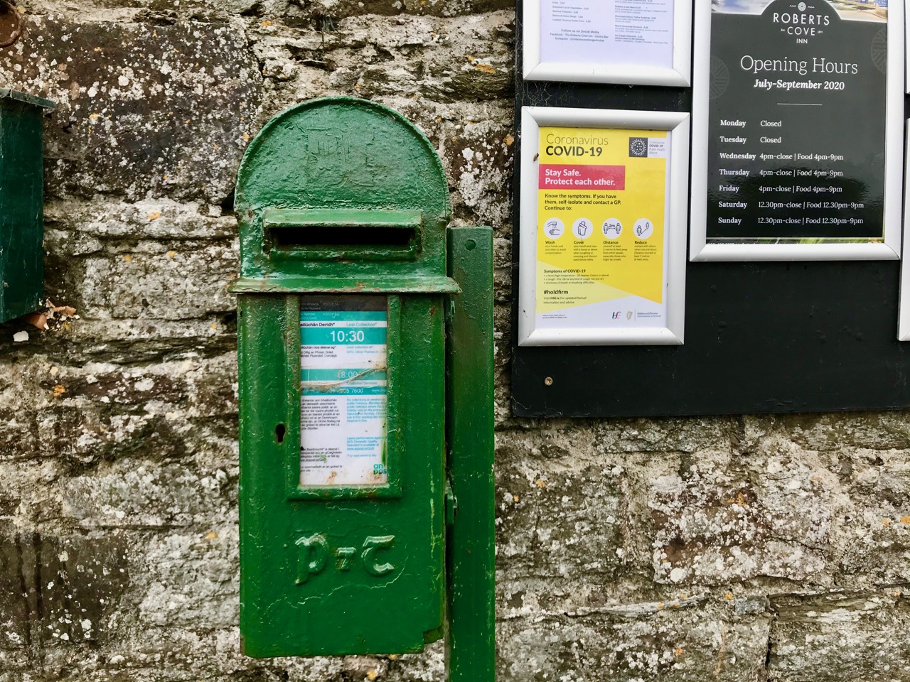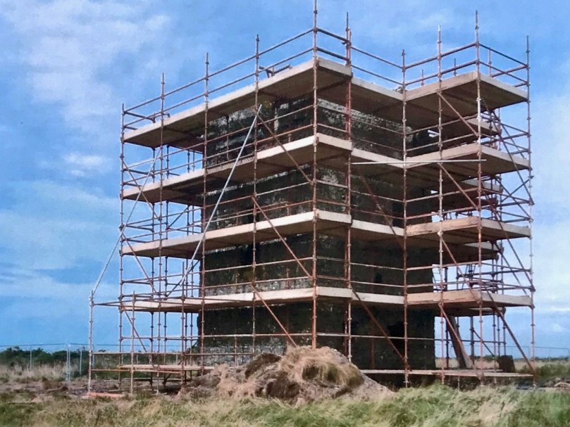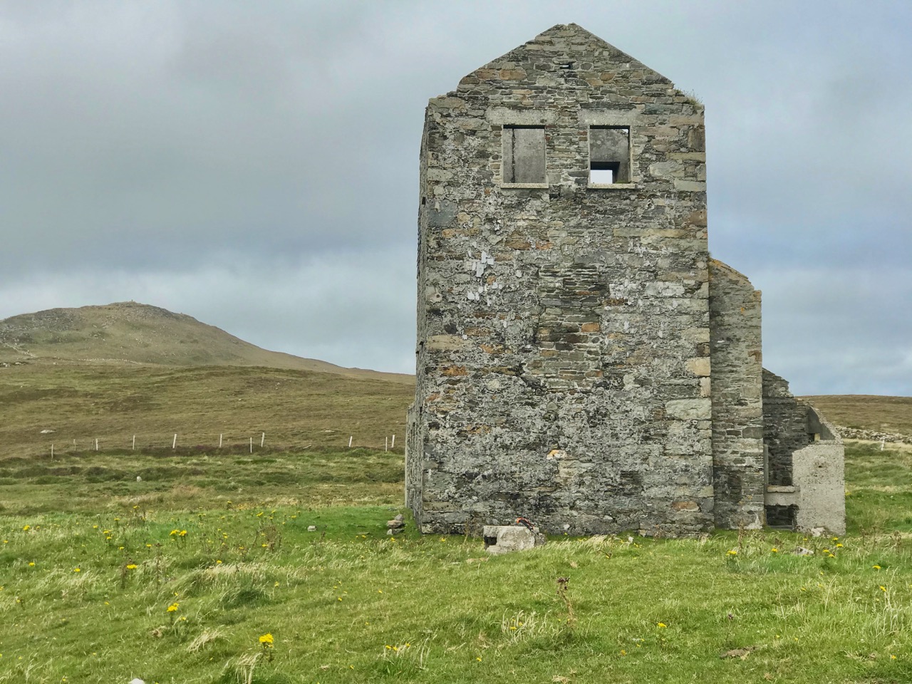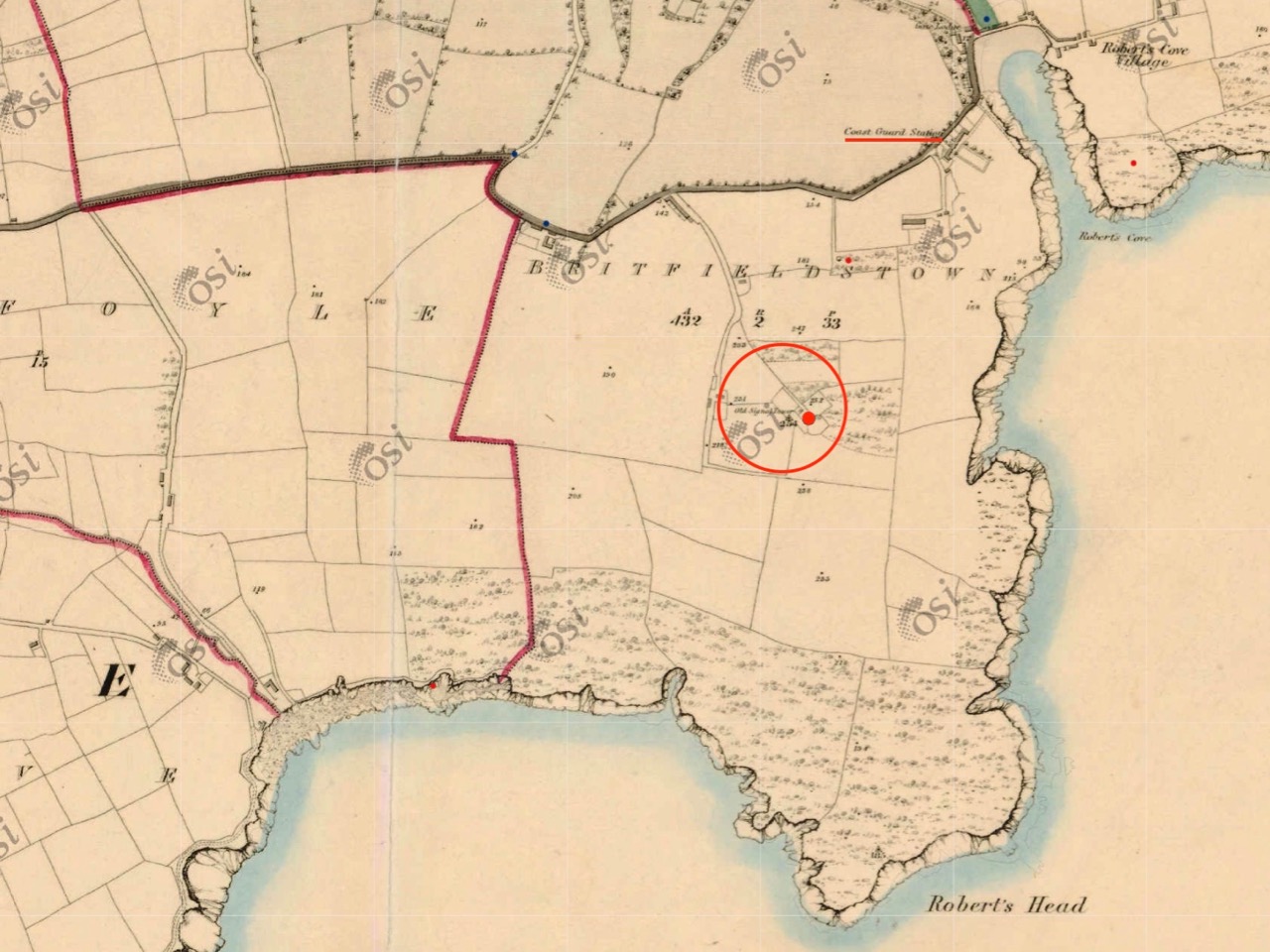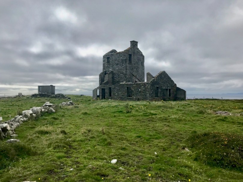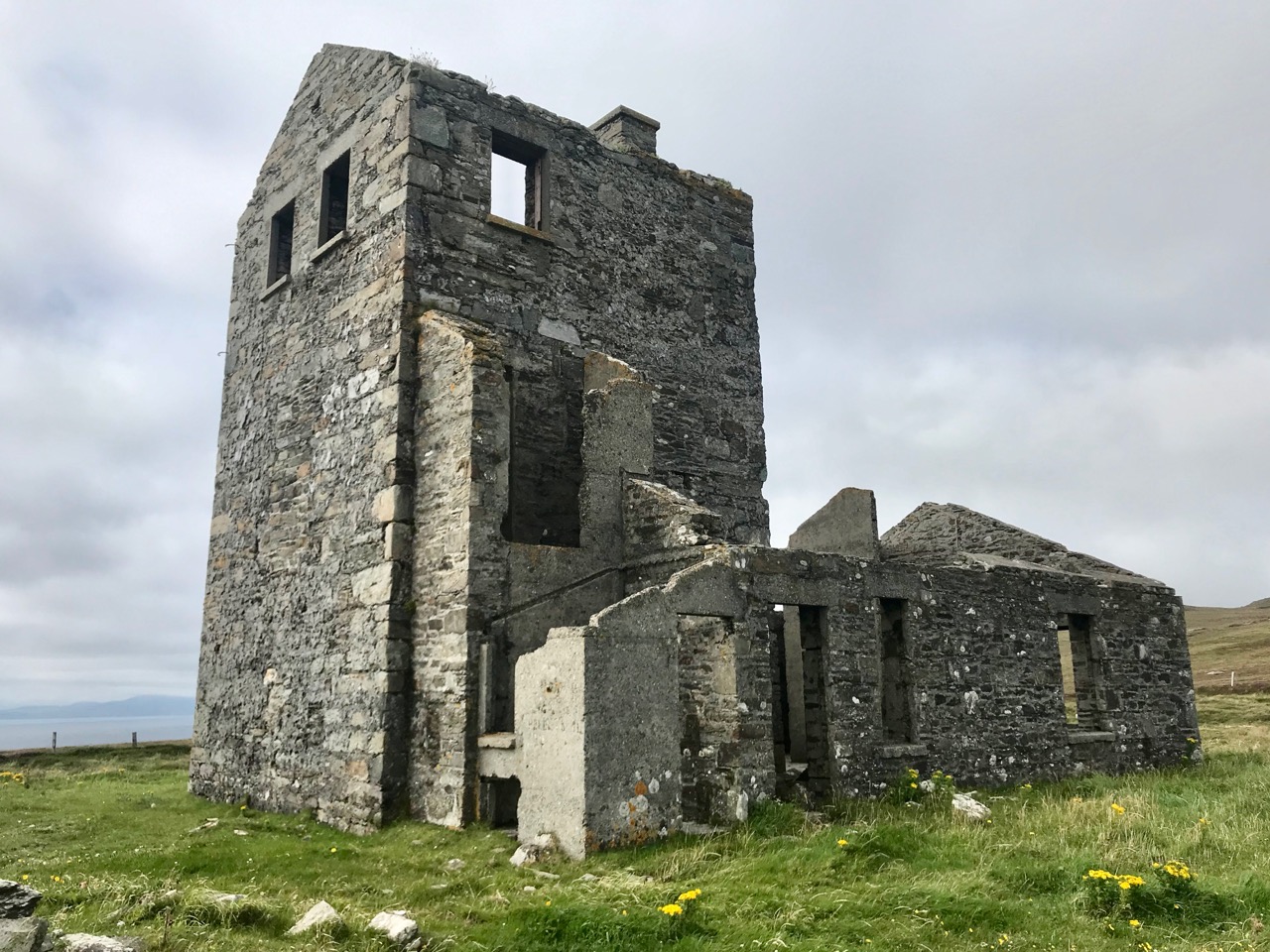 A feature at Cloghane which doesn’t show up on the aerial view is this Second World War lookout post, built close to the early signal tower around 1942. 83 of these structures were built by the Irish Defence Force to monitor activity at sea, many of them relating to Napoleonic-era sites for obvious reasons: these locations had already been selected for their inter-visibility and the panoramic views which they commanded. We have encountered these ‘Emergency-era’ posts previously at Kedge Point, Baltimore, and Ballyroon Mountain, Sheep’s Head (see the full list of links at the end of this post). We shouldn’t get diverted, but if you want to know more about these here is an excellent creative presentation on them carried out in 2014 by Tim Schmelzer of Vienna – particularly, I recommend that you view the first of the videos: it’s wonderful! The LOPs were designed by Howard Cooke RIBA of the Irish Office of Public Works in 1939 and I was fascinated to see that the design achieved recognition (‘posthumously’) from the National Inventory of Ireland Buildings Archive. The posts were cramped, damp and minimal, but apparently at least equipped with small fireplaces: