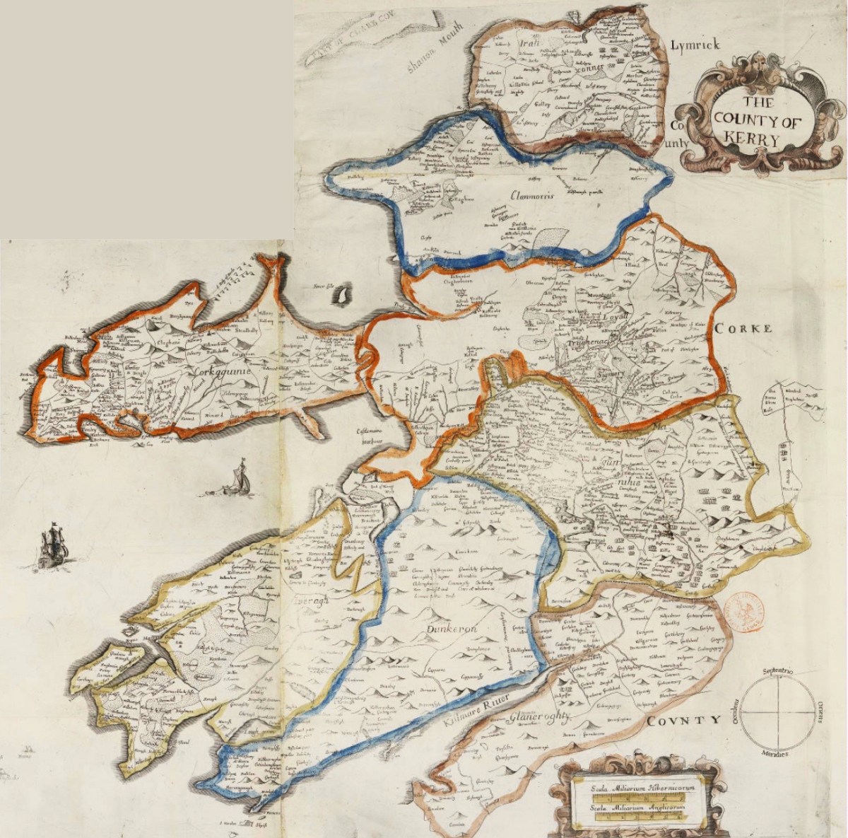 Here is a specific County map of Kerry in greater detail: it encompasses the land divisions spanning from Kenmare to the mouth of the Shannon (Down Survey GIS 1641 – 1670).