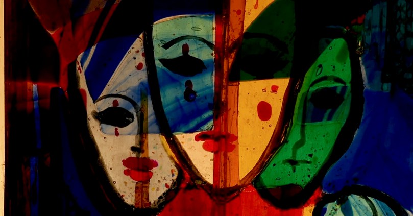 I will leave you with one of George’s exhibition pieces, below, just to remind you that there is more, much more, to stained glass that what we see in churches. It is a complex medium, difficult to master, but so rewarding in the hands of a true artist/craftsman. This one was titled Masks and reflects his love of all things Venetian.