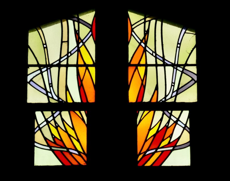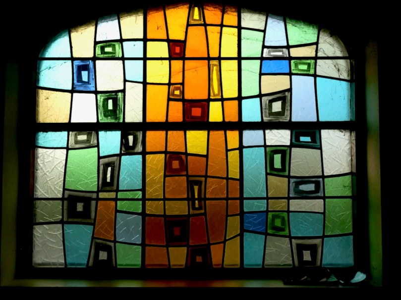 Cahir Catholic Church has MD abstract/symbolic windows, including this little window where Johhny’s love of the wobbly and wavy line is clear – also note the unusual glass