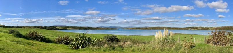 We did have an aim – to find a piece of Rock Art that may be the earliest physical evidence of human occupation on the island. It’s a cupmarked stone in the townland of Kilmoon, overlooking Kinish Harbour. It was a fair walk to the west, over deserted roads and through fields. After a bit of backtracking we managed to find the stone, well weathered but with its markings still visible. It is situated with panoramic views all the way round, taking in the peaks of Mount Gabriel, Mount Corrin and Mount Kidd on the mainland: surely it must have been placed with those views in mind?