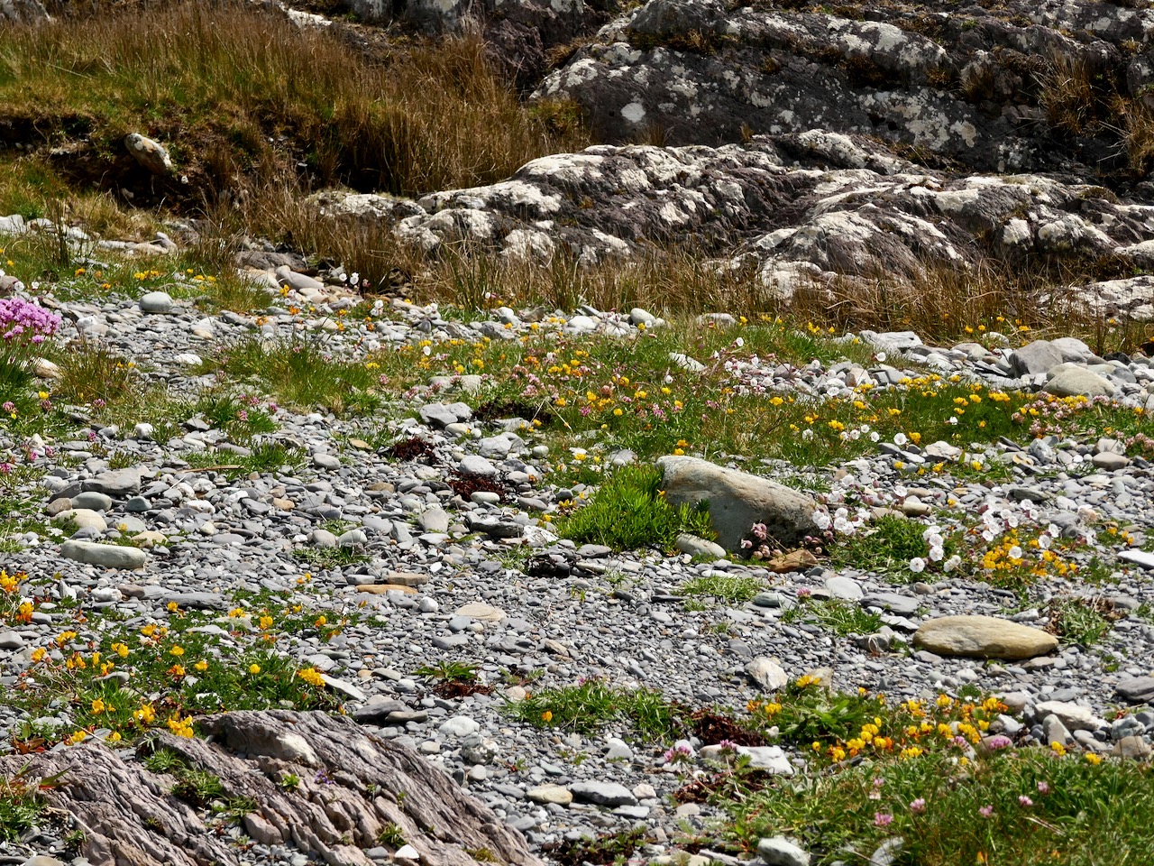 Why is it called ‘Copper Point’? Because there was a copper mine close by, one of many such enterprises that were seen in West Cork in the nineteenth century. Explorations on the island were started in the 1840s by the Cornish mining engineer Captain William Thomas: he wrote a Roaringwater Journal post for us a couple of years ago! William sank a trial shaft for 10 fathoms (60 feet) and extended a level south from this shaft for 3 fathoms. No metal bearing lode was found, and the mine was abandoned. Traces of these workings can still be seen not far from the lighthouse. It’s slightly ironic, perhaps, that the name ‘Copper Point’ arrived from somewhere and stuck.
