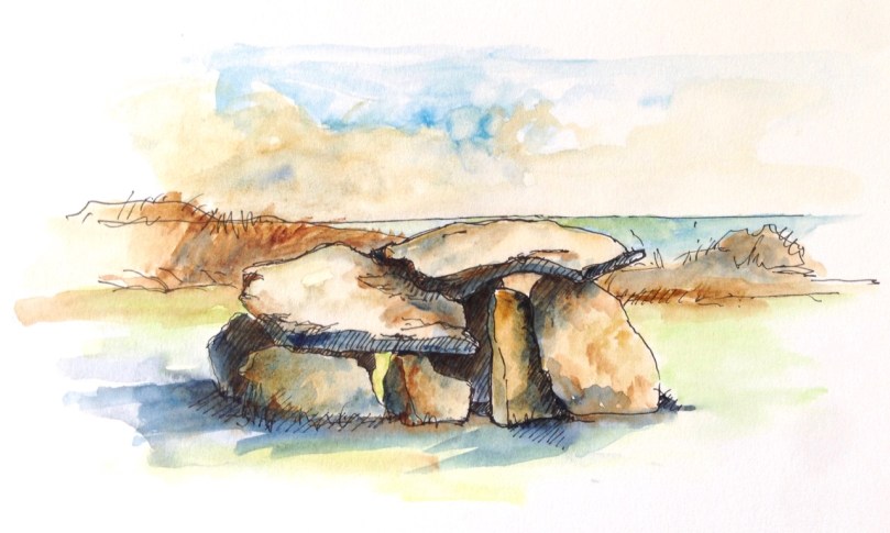 . . . And here is another rendering from Peter of one of the ancient sites that everyone goes past when travelling to the far west: possibly one of the most accessible pieces of archaeology on this section of the Wild Atlantic Way. It’s the Altar Wedge Tomb at Toormore Bay.