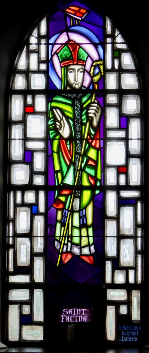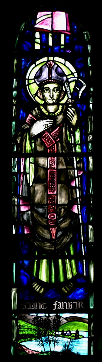Anyone who visits Irish churches knows that what we want in them are our own saints – Patrick and Brigid certainly, but after that they must be local. So along with every other stained glass artist who ever worked in Ireland, Johnny had to study the hagiographies of our obscure legendary saints and satisfy a demanding congregation familiar with the stories.
