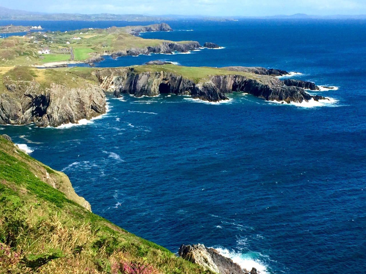 You arrive at Brow Head by driving west from Schull out towards Crookhaven. If the water is low in the Haven you may spy the remains of ancient field boundaries, covered at high tide.