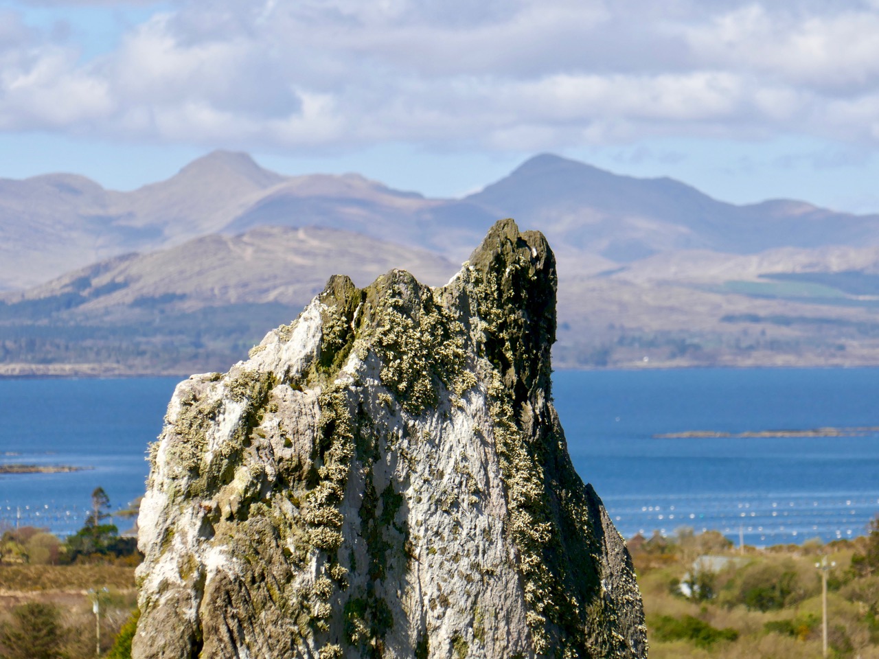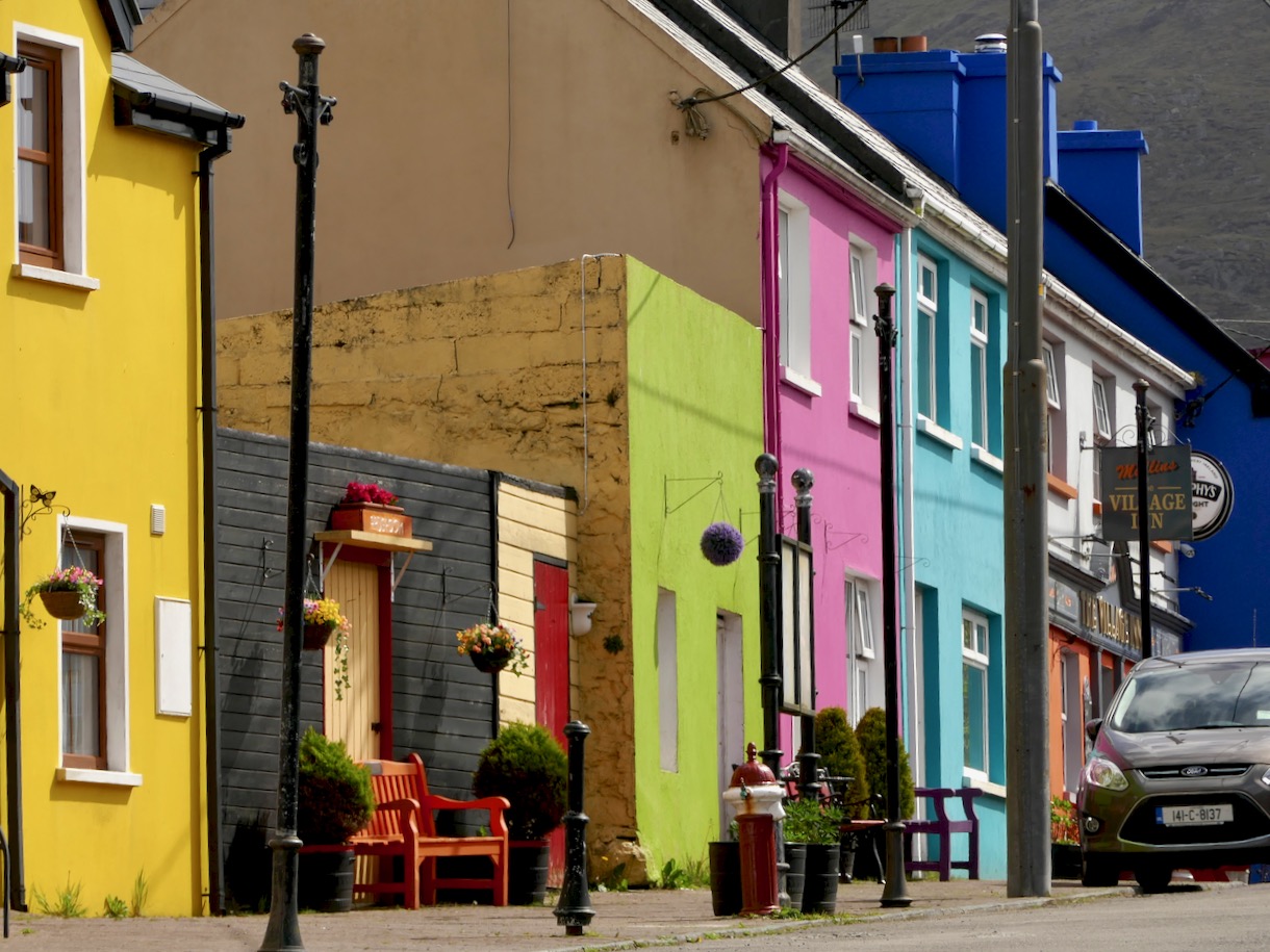We love the Beara and try to get over there as often as possible. It’s famous for its colourful villages – this one is Ardgroom. And not too far away is a wonderful stone circle – Robert mentioned it in last week’s post. This photograph is of the outlier and shows how it seems to mirror the shape of the landscape on the Iveragh Peninsula.