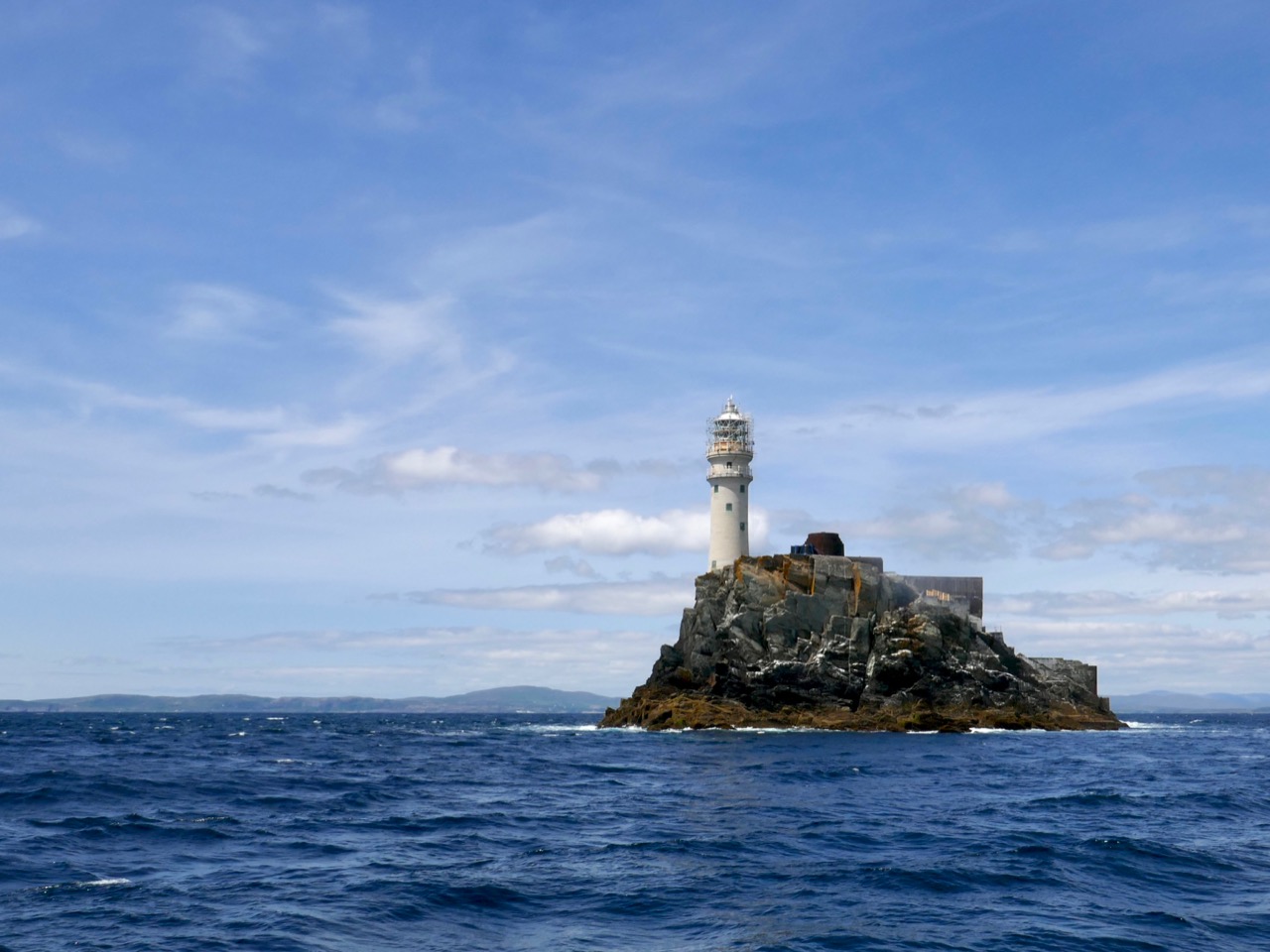 From there to the iconic Fastnet Rock Lighthouse. They changed the bulb this year, to LED. We can still see the light at night, but it doesn’t sweep across the sky like it used to. On this trip, mostly photographed by my nephew, Hugo, the scaffolding was still up for the renovations.