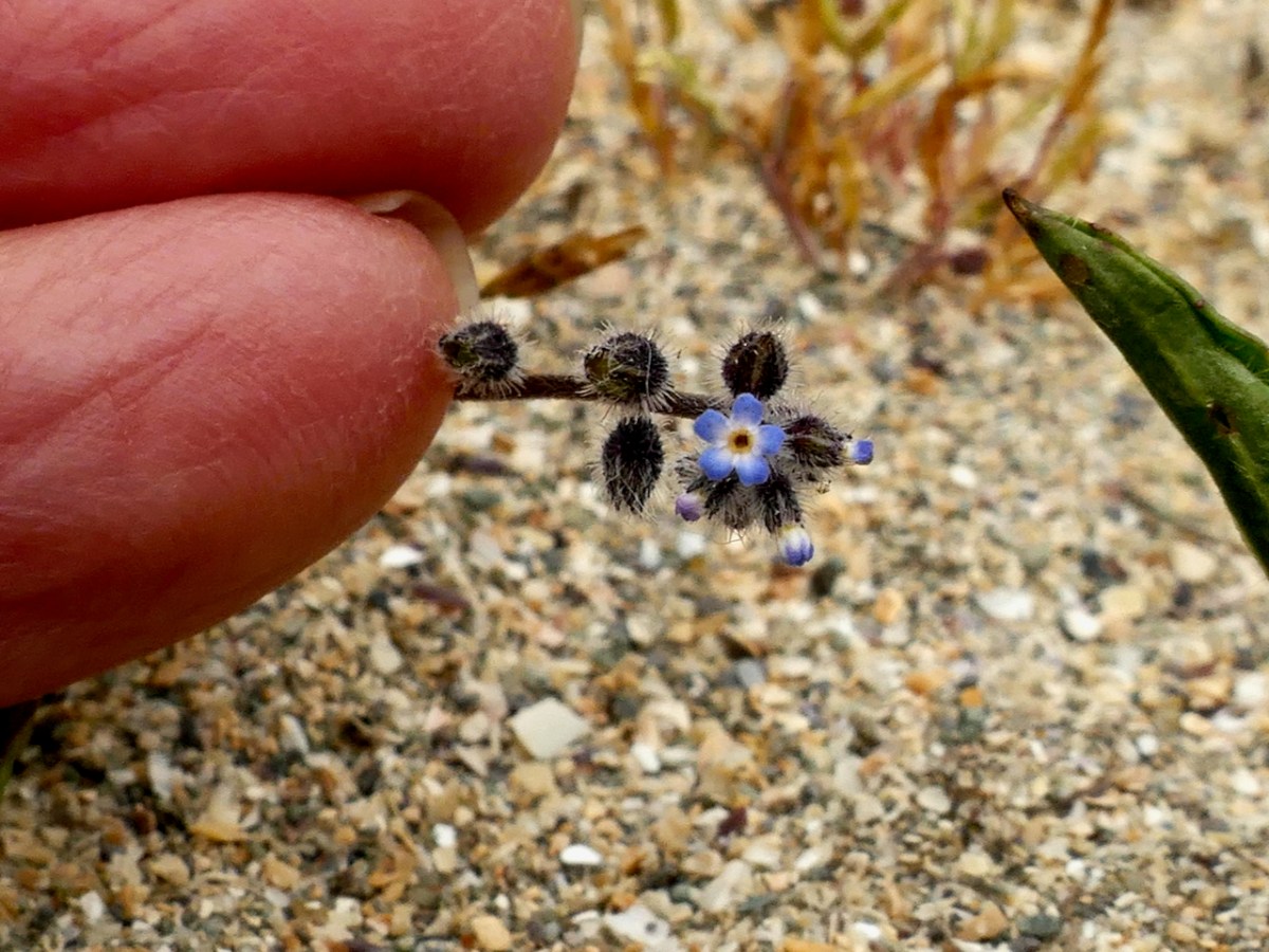 Thus, along the way, I was introduced to several plants that were entirely new to me. Despite the fact that I have been to Barley Cove on numerous occasions, many of them spent lying in the grass on the dunes (see this post and the wildflower slideshow within it, for example), I had never seen Common Cornsalad (above) nor Early Forget-me-not (below) before Friday.