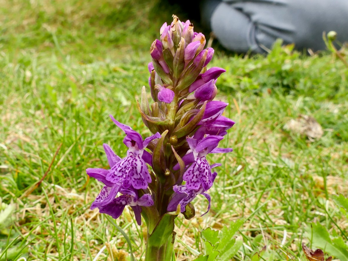 Our next target was an orchid – the Green-winged Orchid. But, on the way, we found another Orchid – the Irish Marsh Orchid (below). It was beautiful and bold and instantly visible in the short grass on the dunes.
