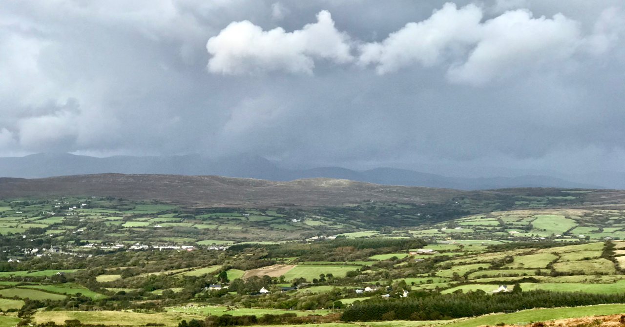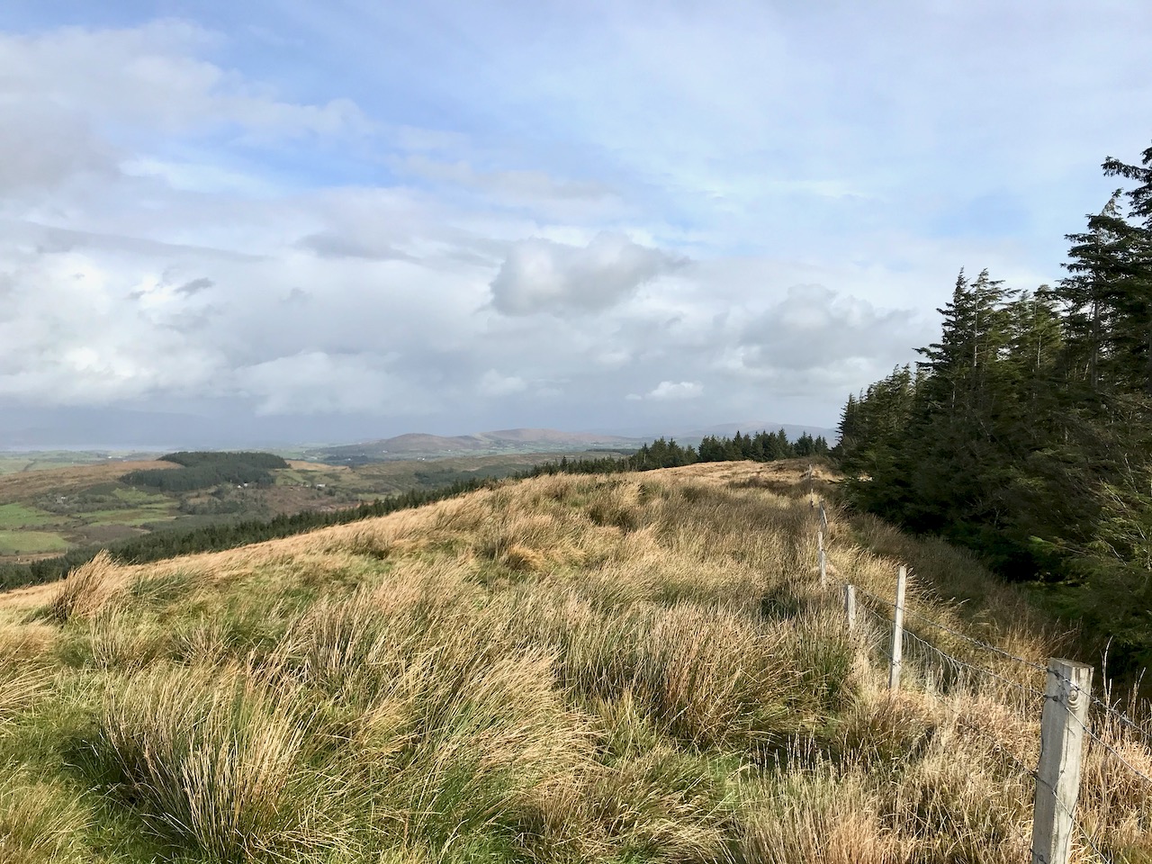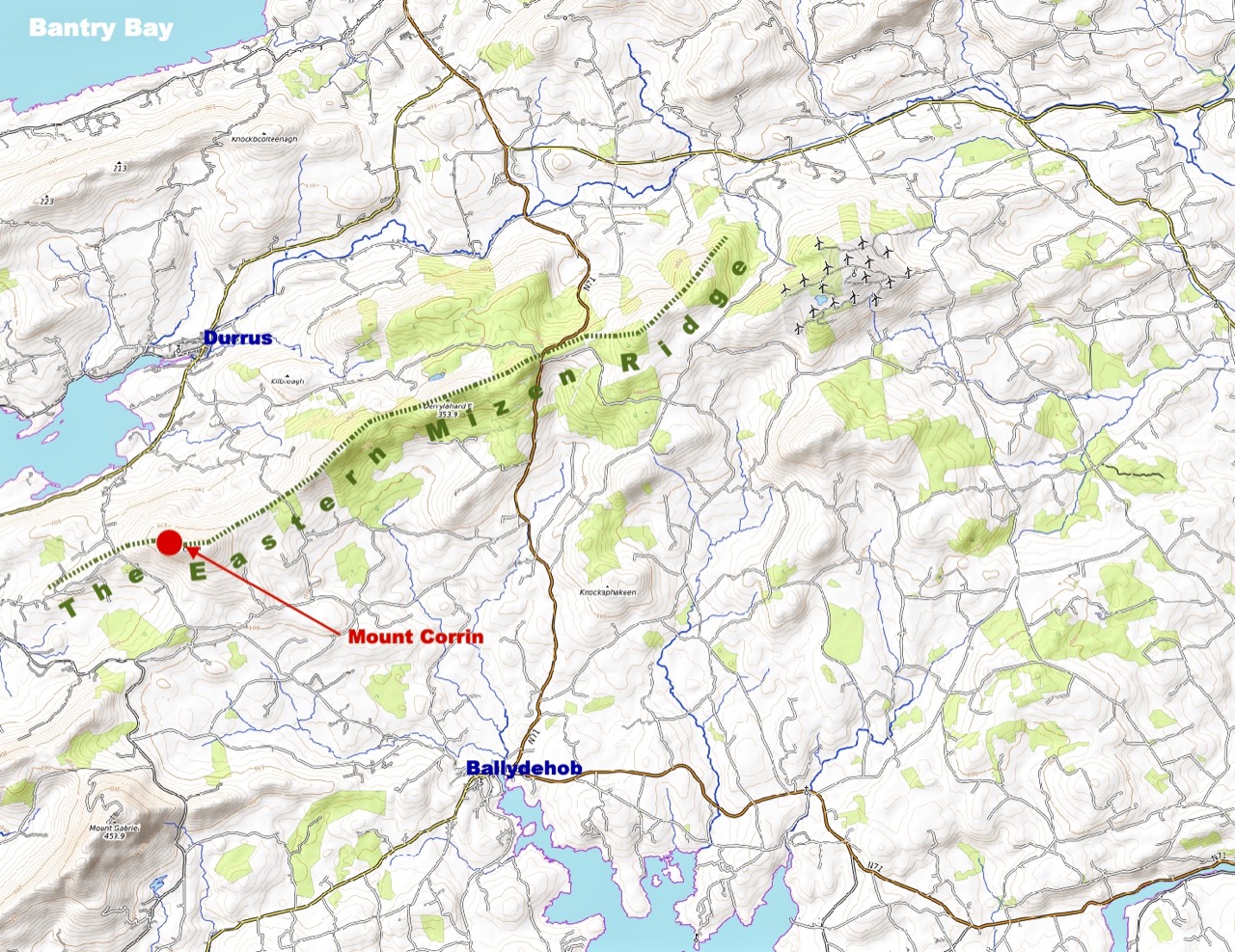In an unusual piece of cross referencing, Tessie Coughlan from Dunbeacon School, on the other side of Mount Gabriel, tells of the same rock landing in Moynihan’s field (above, and below with Mount Corrin in the background).