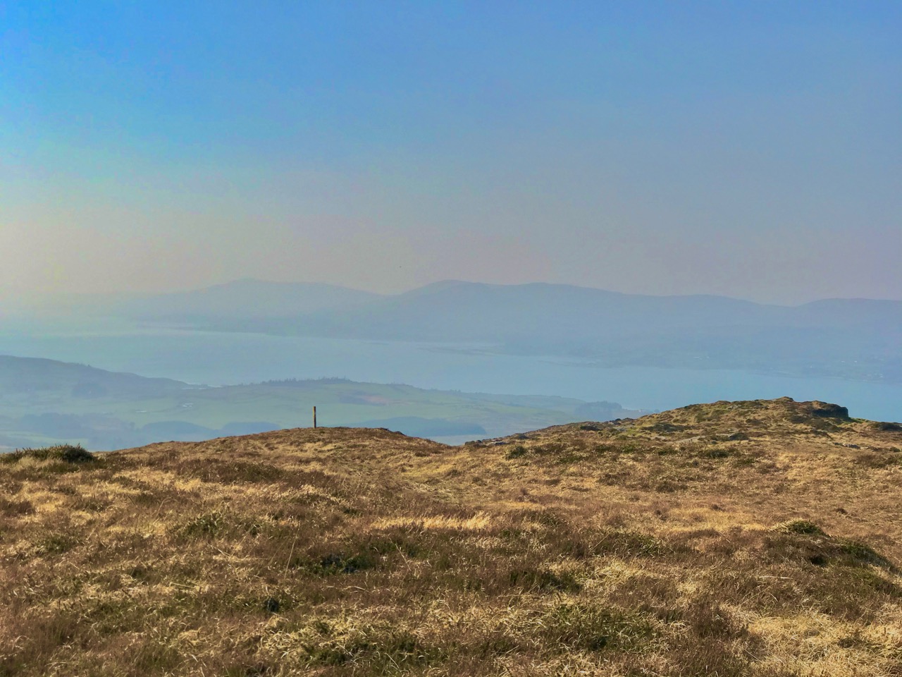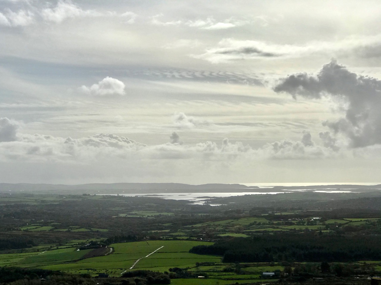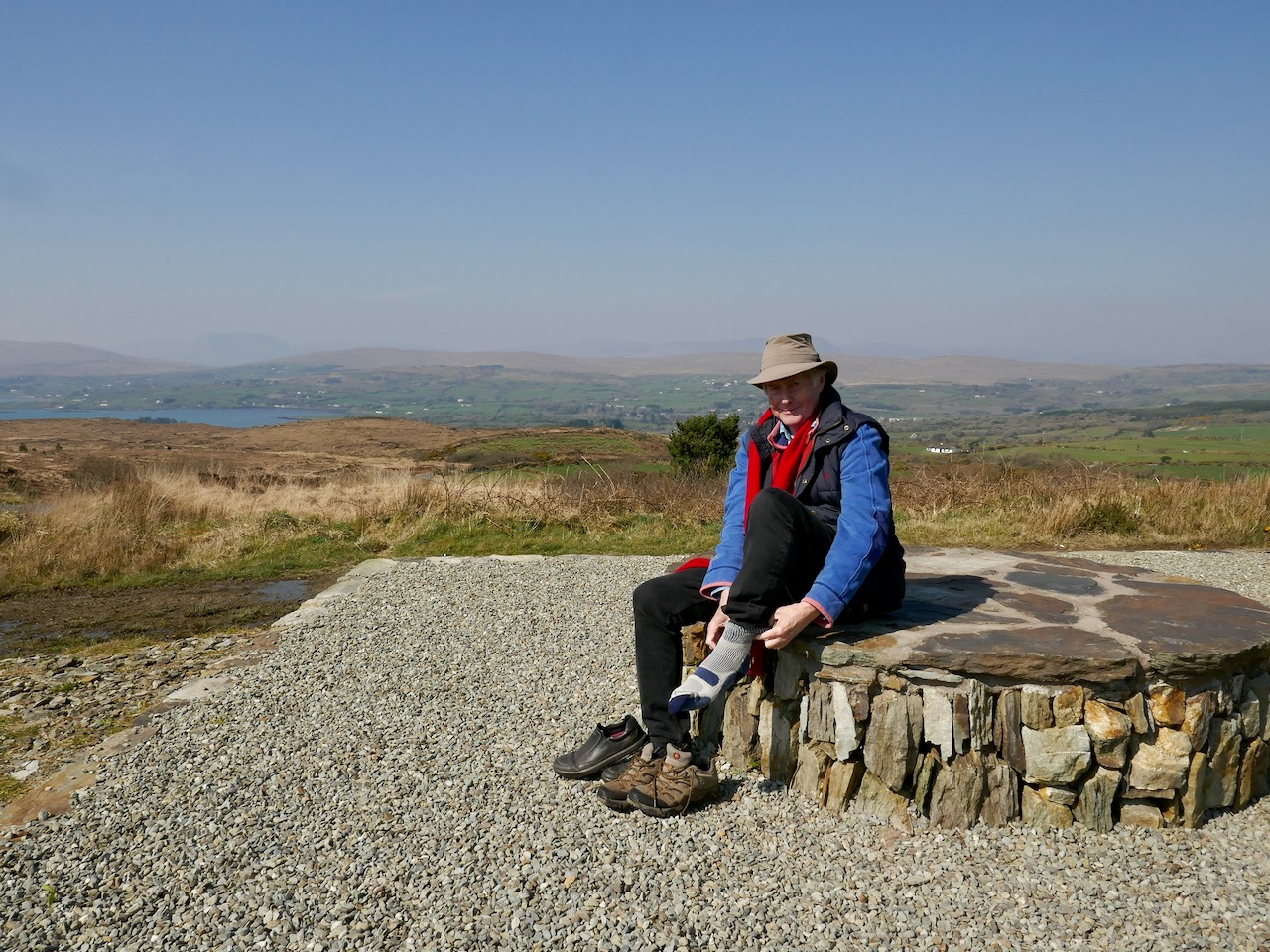 No sign now of any clay or writing but the National Monuments record does reference traces of a mound which may have covered the wedge tomb originally but is impossible to make out now. There are panoramic views from this wedge tomb, not only to Mount Gabriel and Mount Corrin (above), but west to the sea as well (below).