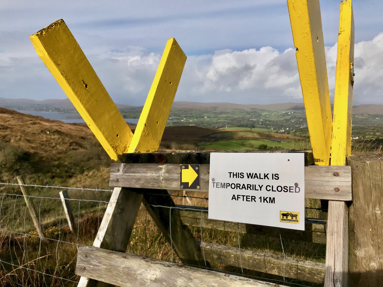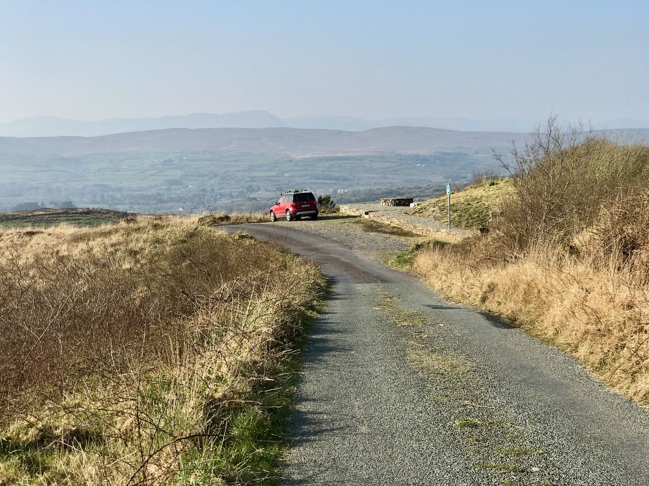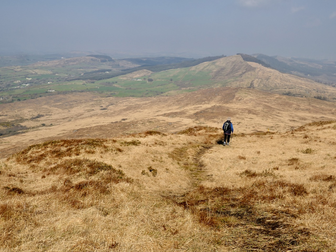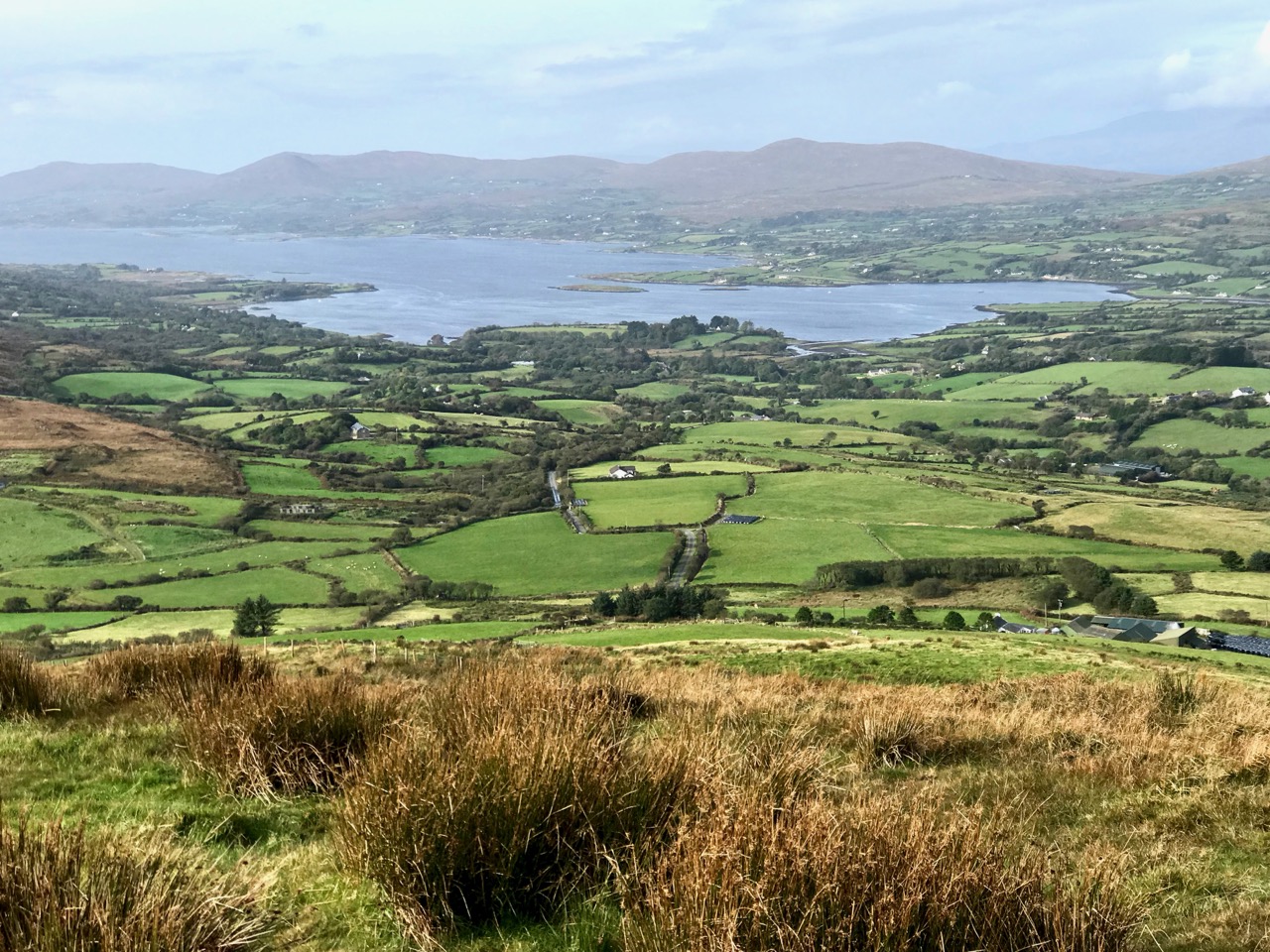 No sign now of any clay or writing but the National Monuments record does reference traces of a mound which may have covered the wedge tomb originally but is impossible to make out now. There are panoramic views from this wedge tomb, not only to Mount Gabriel and Mount Corrin (above), but west to the sea as well (below).