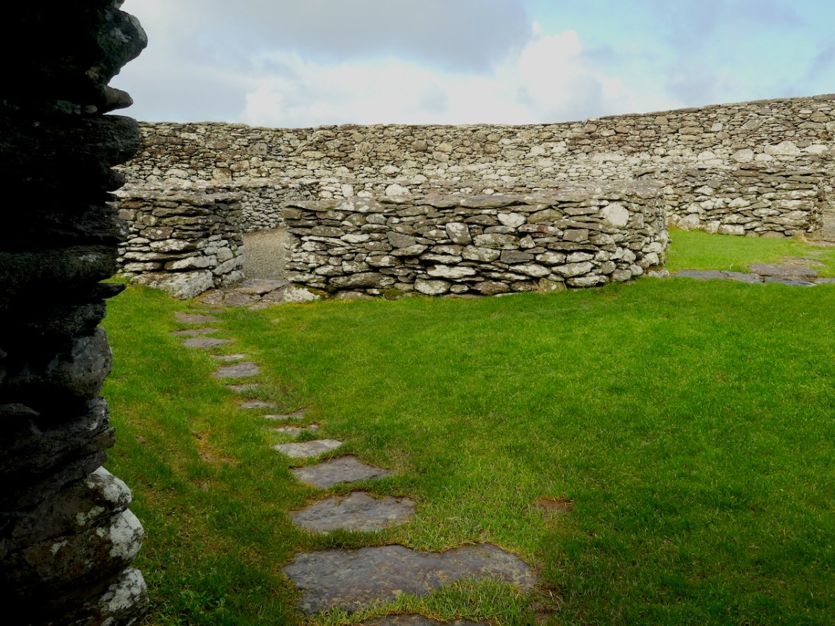 The walls and stone steps, which are a standout feature of these Kerry Cashels, are described in the National Monuments record. Note they use the word Caher instead of Cashel – both mean ‘stone fort.’