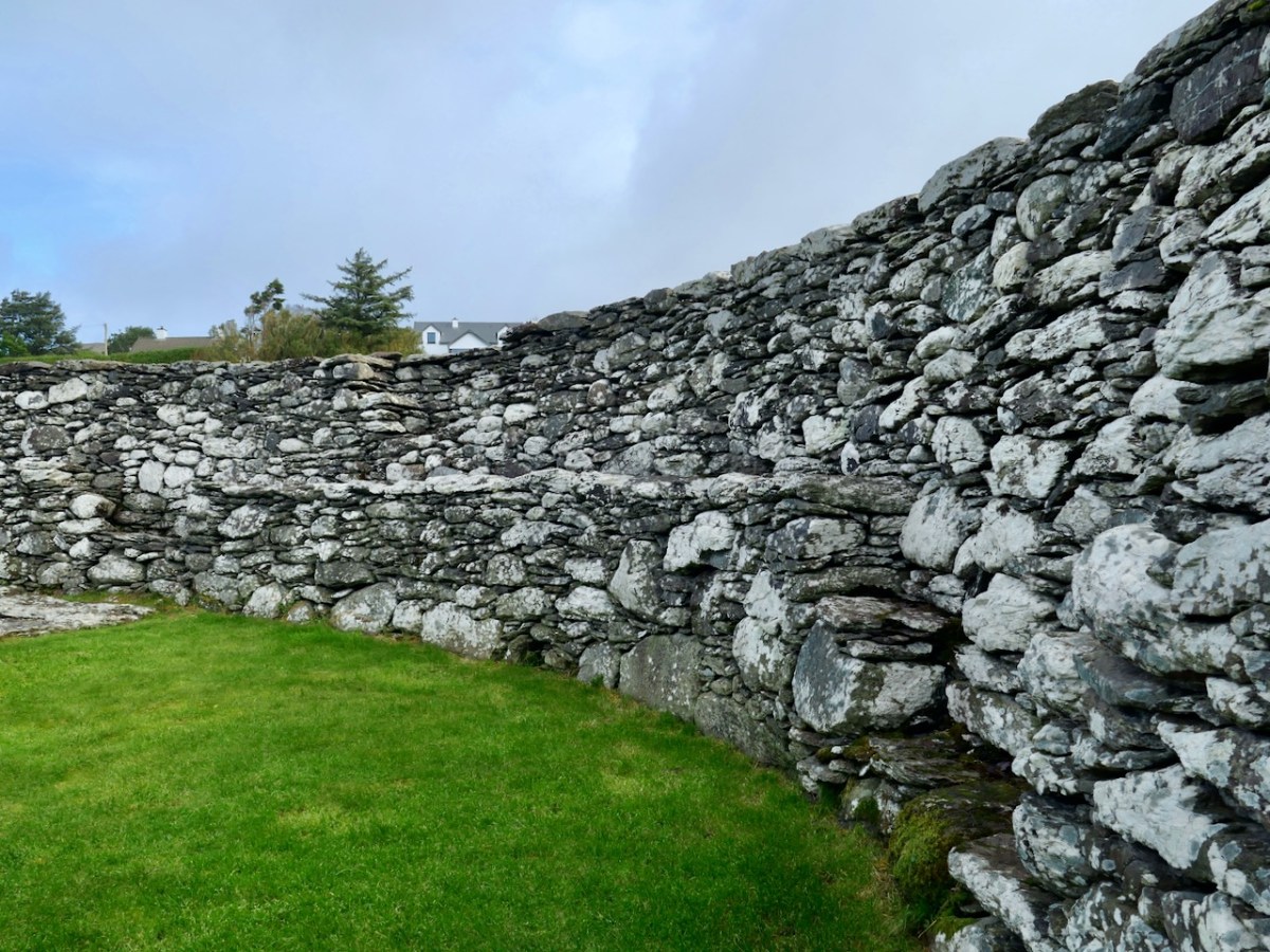 Interestingly archaeologist Aoibheann Lambe, the rock art expert, has identified a number of pieces of rock art in an around the fort, including on stones used as building materials. While these pre-date for fort by several thousand years, it is evidence that people were living in this area for millennia. It’s easy to see why – it’s a spectacular setting, with access to the sea and a location that provides a strategic point of domination over the surrounding landscape.