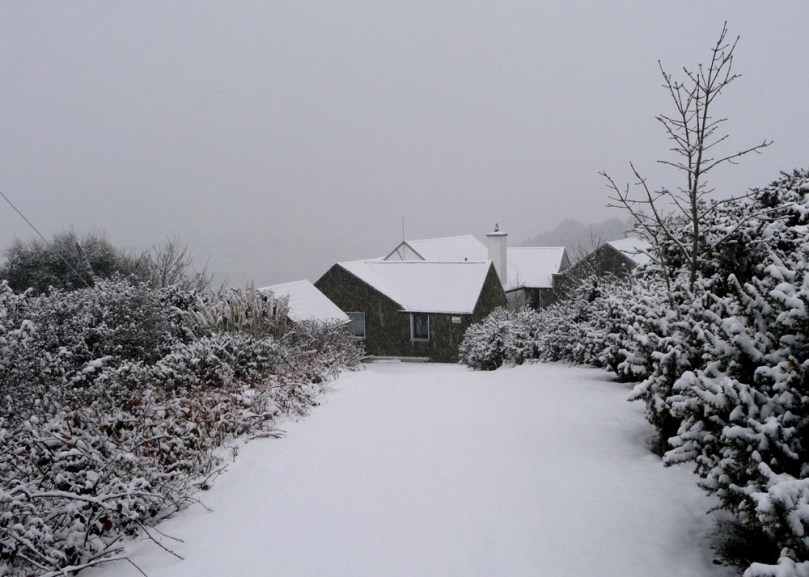 Ten years ago, the west of Ireland experienced an exceptional snowfall, and above is a photograph taken by our near neighbour, Julian van Hasselt, before we arrived. Mostly, our weather is relatively mild due to the effects of the gulf stream on the south-western coast. The castle can clearly be seen here, beyond the fields of Castle Farm. This view of our house (below) was also taken in 2010 by our neighbours Dietrich and Hildegard Eckardt:
