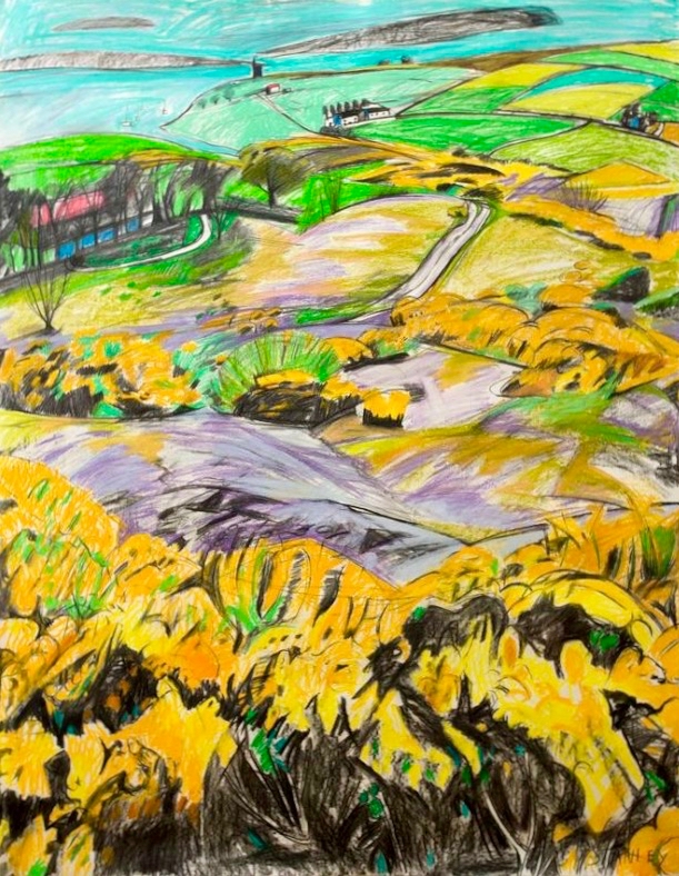 Let’s have a look at some of the art works that feature the Cove and the Castle. Jacqueline Stanley was one of many artists who was attracted to the beauty of West Cork. Now in her nineties, she moved from England to Ireland in the mid 1970s and purchased the old School House at Rossbrin as a country retreat: it has only recently changed hands.Here are two of her works, depicting Rossbrin. You can find more on her website.
