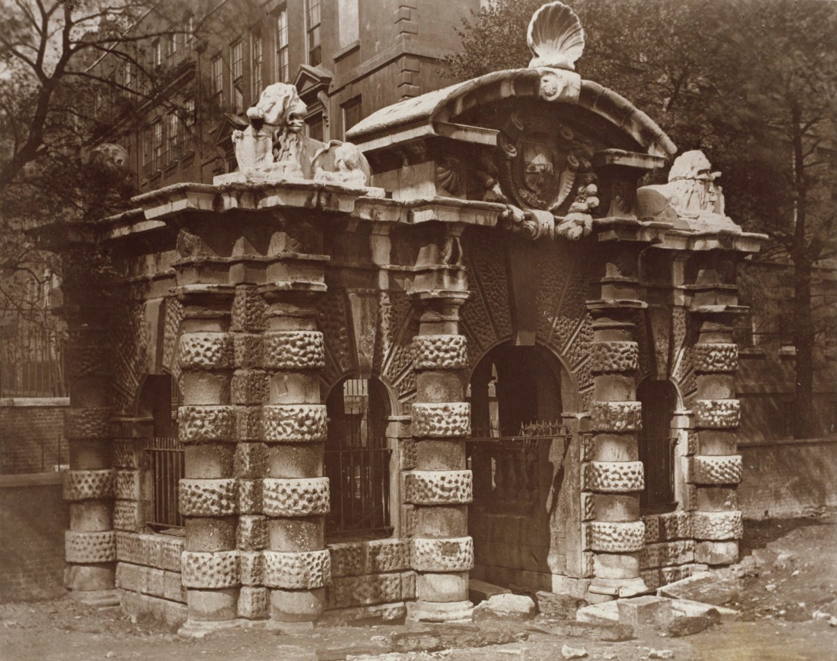 Of course, it is larger and more elaborate, but you can still see the basic shape, with its curved arch on top and the arched niches in the wall. The arches at New Court may have been plastered, perhaps, or faced with some material. The York House Water Gate dates to 1626 and it’s all that left of the York House estate – the Tonsons may well have been familiar with it or with similar water gates along the Thames. Building such an edifice would have been aspirational, indicating a desire to impress.