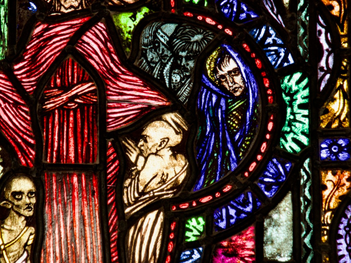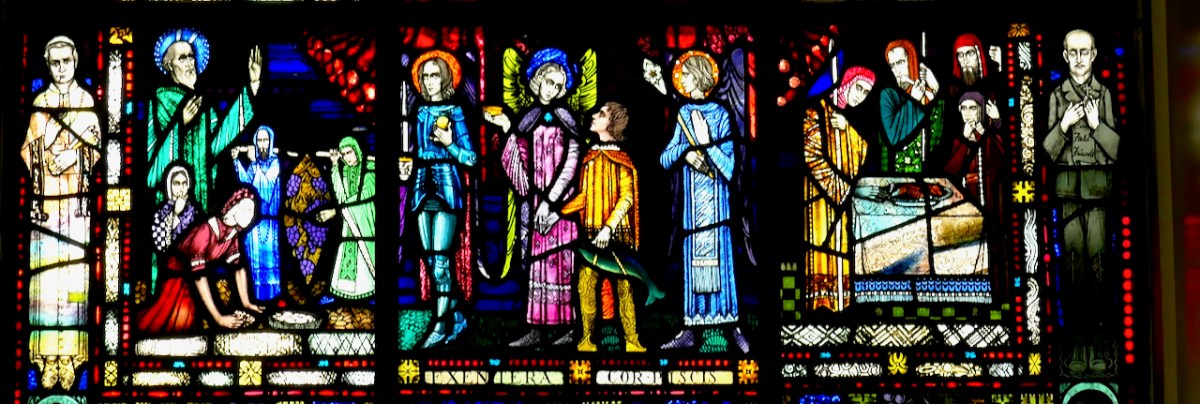Born in 1873 into grinding poverty in a Dublin tenement, through a combination of great good luck and his own prodigious talent and hard work, Michael Healy turned himself into one of the foremost stained glass artists of his time. Reading David’s account, it is difficult not to be overwhelmed at times by the hardship endured by Healy and his family in turn-of-the-20th-century Dublin. Packed into one room with miserably inadequate sanitation, whole families succumbed to disease and early death. Consumption was rampant and the only recourse for anything approaching treatment was the dreaded workhouse. Infant mortality rates were high and so we read about several Healy babies who failed to survive into adulthood, as well as adults carried to early graves, leaving widows and widowers to try to cope.