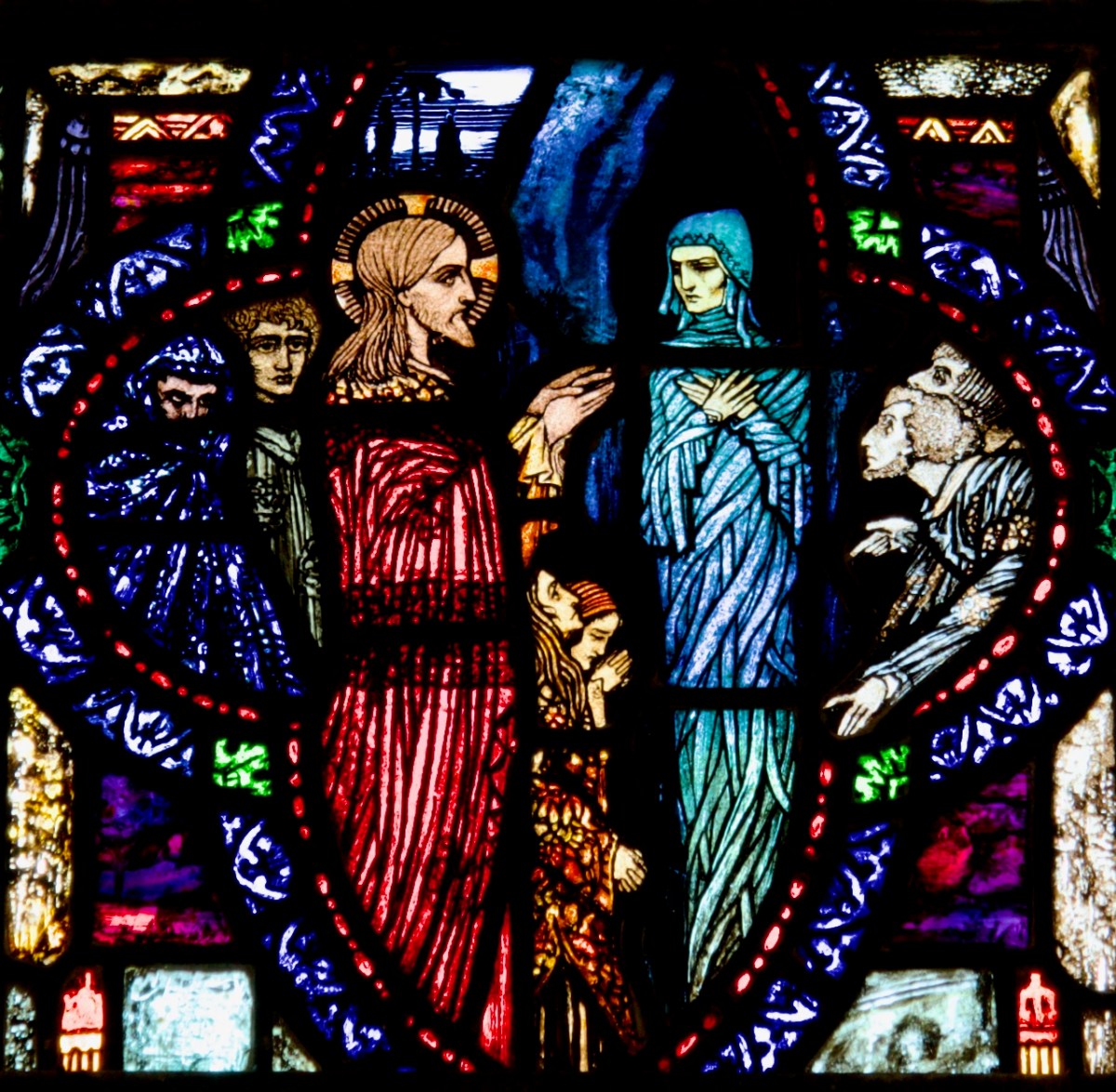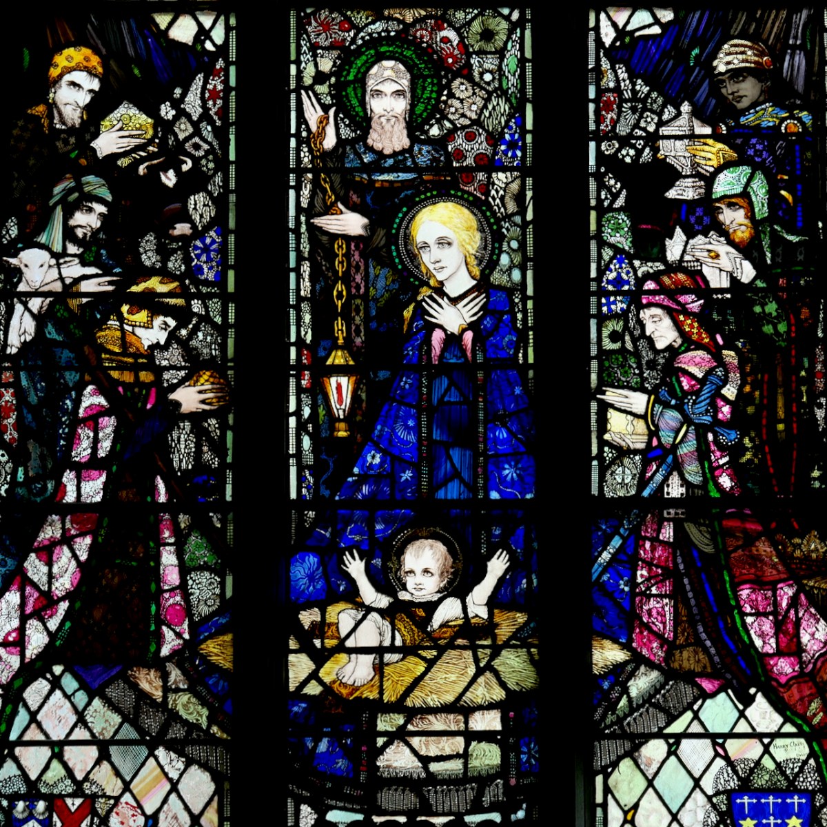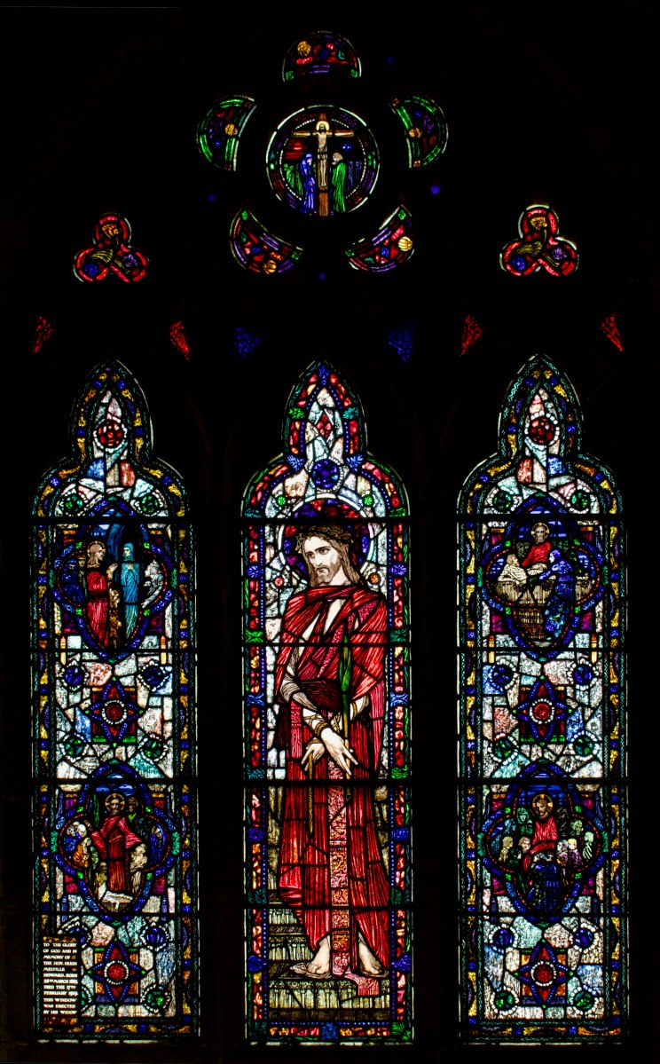 All the photographs in this post are my own – but I haven’t seen that many Healy windows, and my photography does not bear comparison with Jozef’s magnificent images. The book is profusely illustrated – it’s one of its many strengths – with many photographs of the tiny details in which Healy delighted and which distinguish his windows from those of other artists. Healy spent all his working life at An Túr Gloine (The Tower of Glass) the Studio founded by Sarah Purser. If you are unfamiliar with this period in Irish stained glass, you might like to read my post Loughrea Cathedral and the Irish Arts and Crafts Movement before continuing.