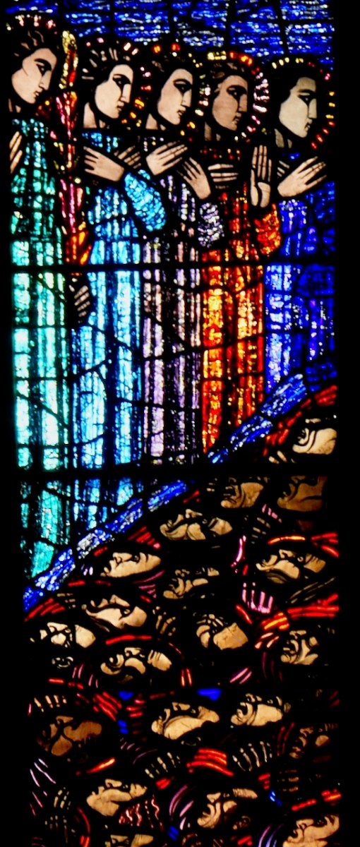 Considered one of his masterpieces, this is the Last Judgement Window in Loughrea, completed towards the end of his life. A detail from The Damned (right -hand light) is below