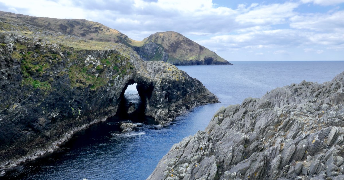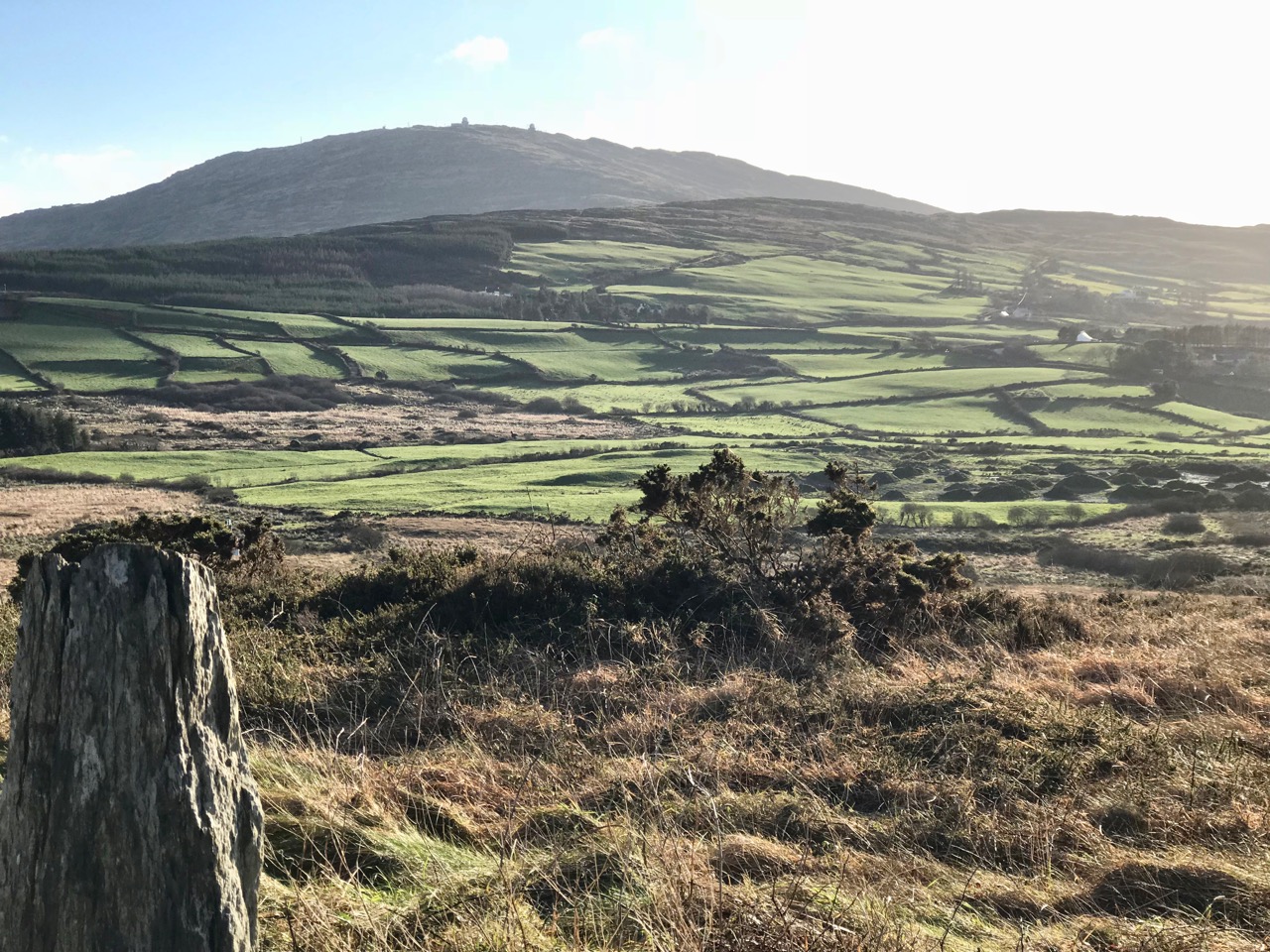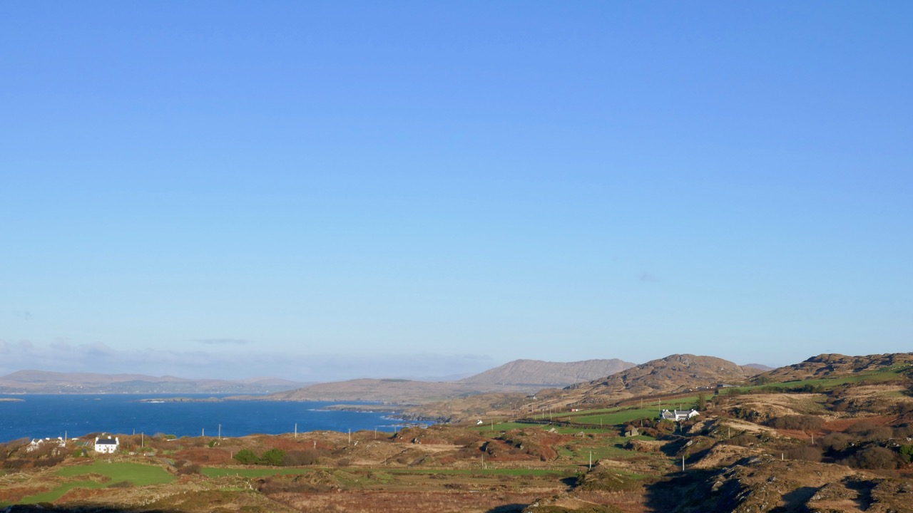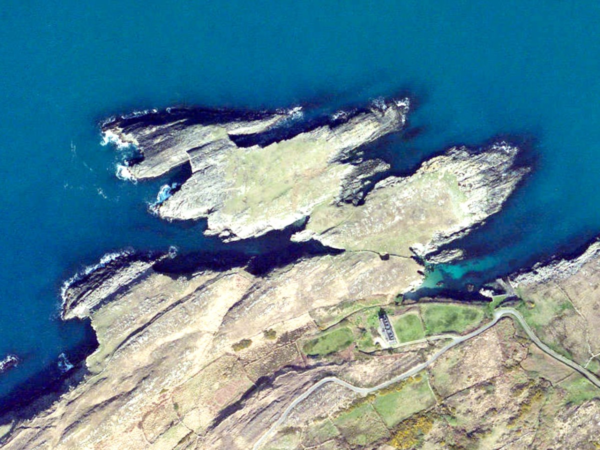 The photograph above was taken from Mount Gabriel. The peninsula we are visiting, The Meallán, in the townland of Lackavaun, is the land that projects into the sea at the top right. Can you make out the sea-arch?