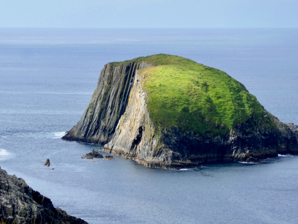 It was a great day for the young and fit lads, and at least three would have to go. Fifteen sheep were taken from Canty’s Cove at Dunkelly or the pigeonholes (Cuasnacolúr) on the south side of Meallán. Getting off at the island was a different matter and you needed a still day, as to get up onto the island, even with a gentle heave, was anything but a joke without a landing place. Once you had a man up, a rope was used to haul up the sheep. In the passing of four months on Bird Island the sheep would be as fat as pigs and as wild as the sea around them. It was the very devil to get them off again. By the time you had a brehóg of sheep in the boat, you would be sweating buckets!