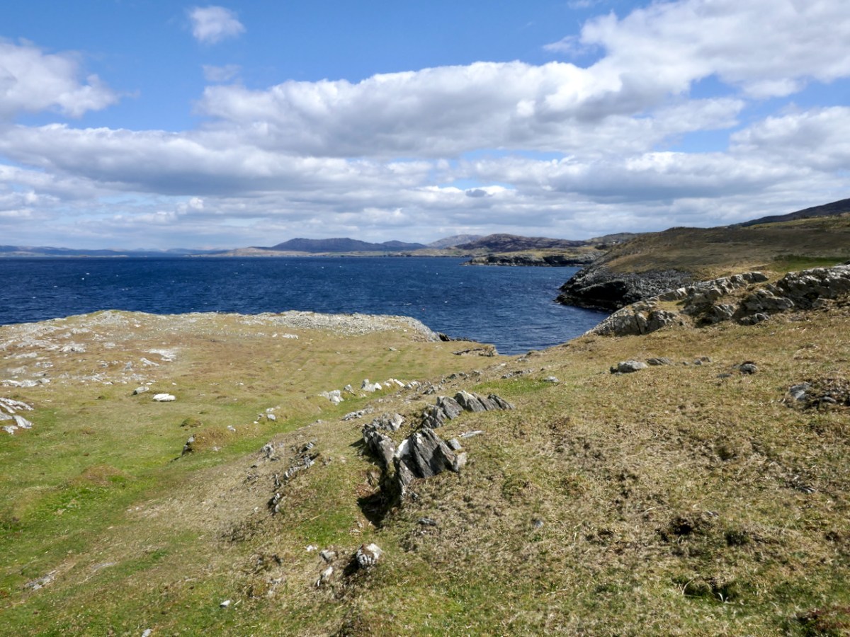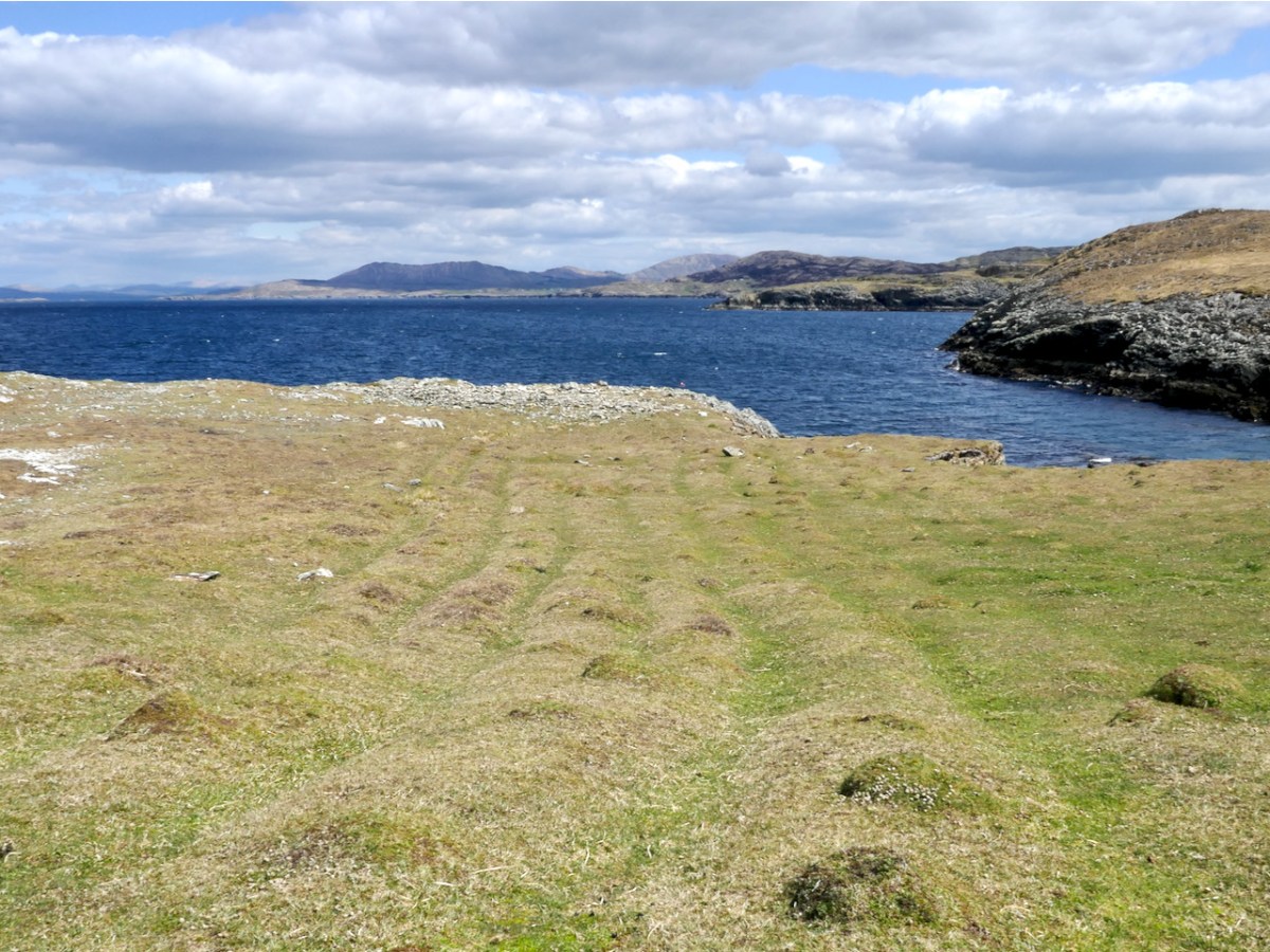 As you can see from the map, the main feature of Lackavain (leaca bhán – white slabs) is a rugged and bare peninsula. Not very promising, you might think. But see that sheltered spot on the south-eastern end – a grand place for a little quay. It was used for many purposes – fishing, of course, but also for getting to Bird Island. And even though there are no houses on the peninsula now, and none on the historic maps, we came across evidence of cultivation, in the form of potato ridges.