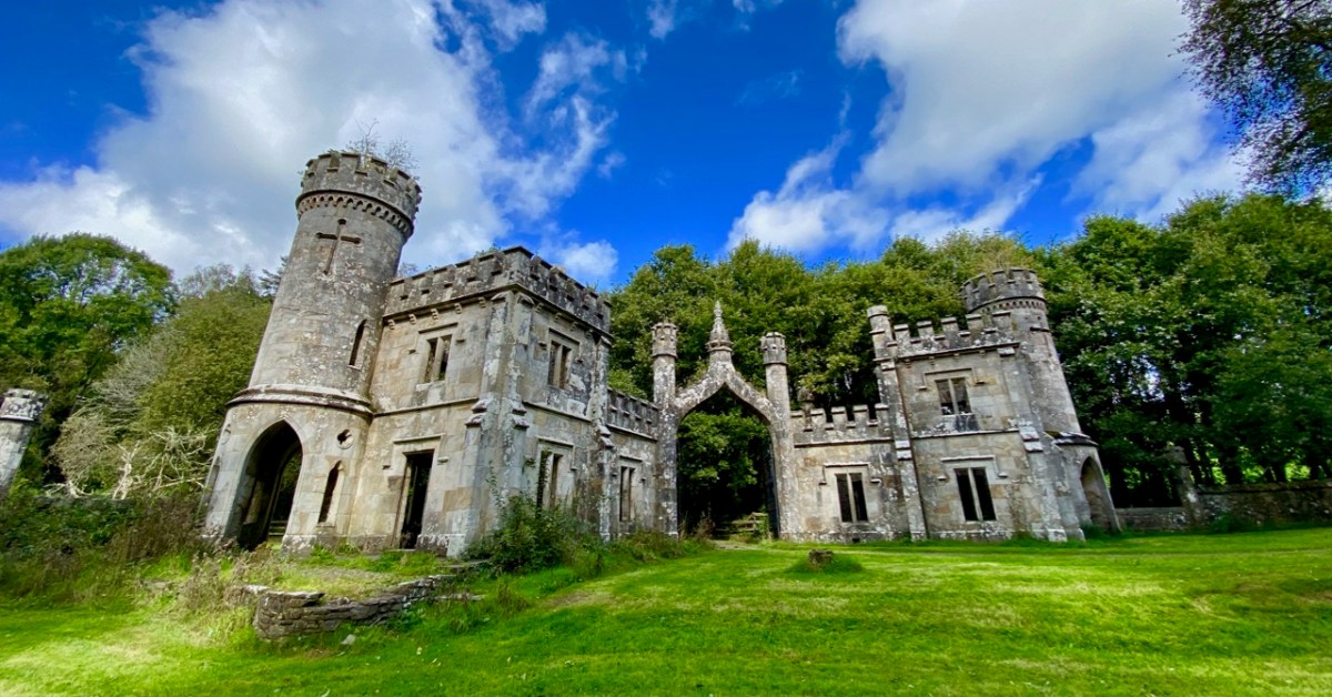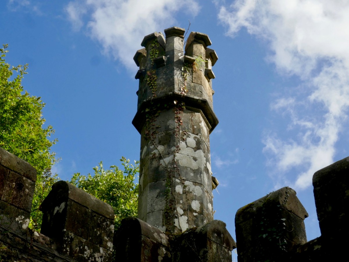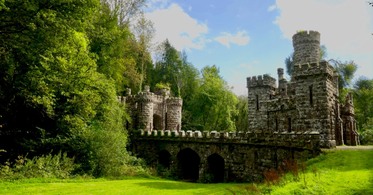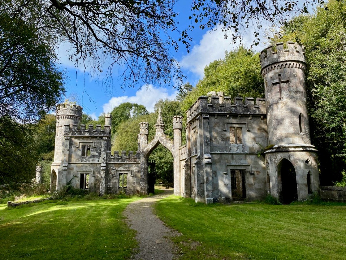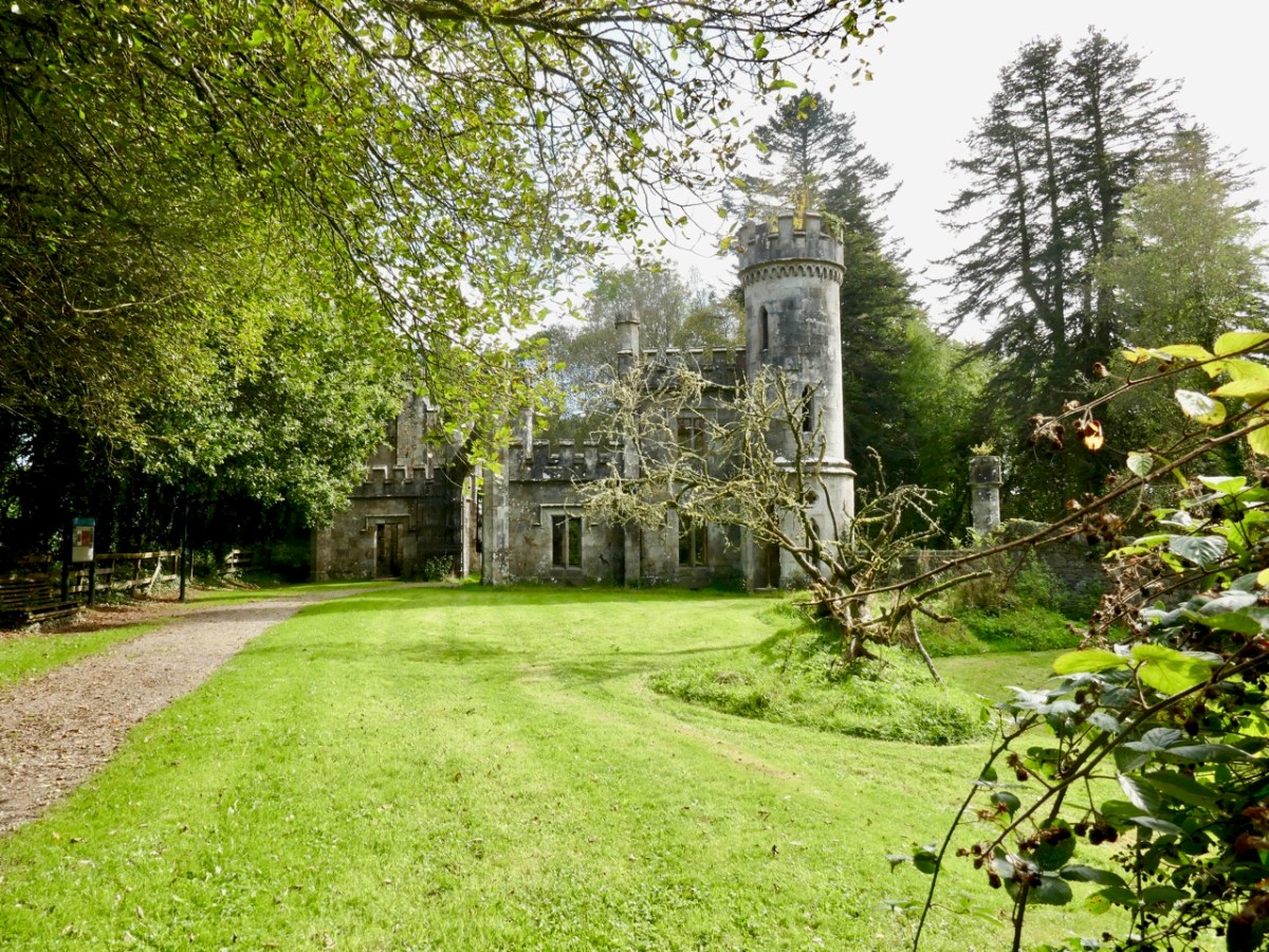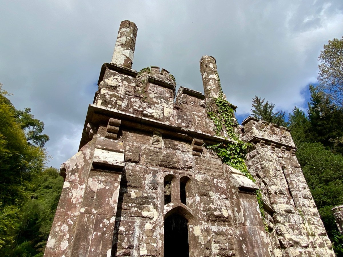 This post might also have been called A Monument to Imprudence because of the story which it encompasses. But, first and foremost, it is a bit of an architectural wonder, and certainly worth the deviation from the motorway if you are travelling between Cork County and Dublin. It will add only 20 minutes to your journey – plus however long you decide to spend walking the publicly accessible woodland to discover the nineteenth-century extravagances of Arthur Kiely, Esq. Leaving the M8 motorway at Fermoy, head east towards Lismore on the R666: you will reach a car park and trailhead for Ballysaggartmore on the left within half an hour. After your visit, find the R668 heading north and rejoin the M8 at Cahir.