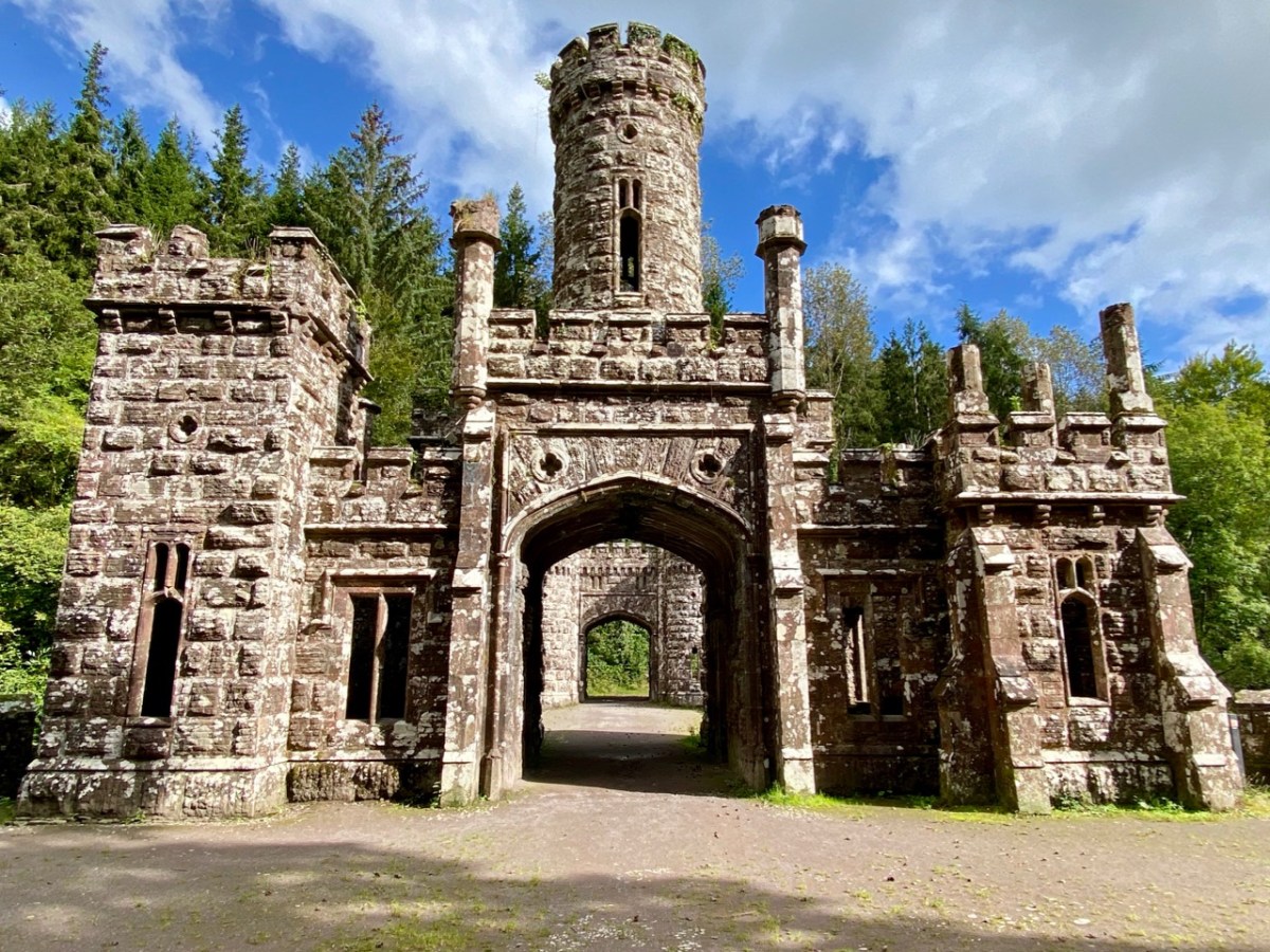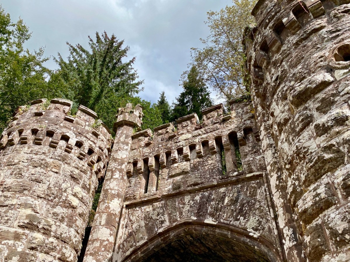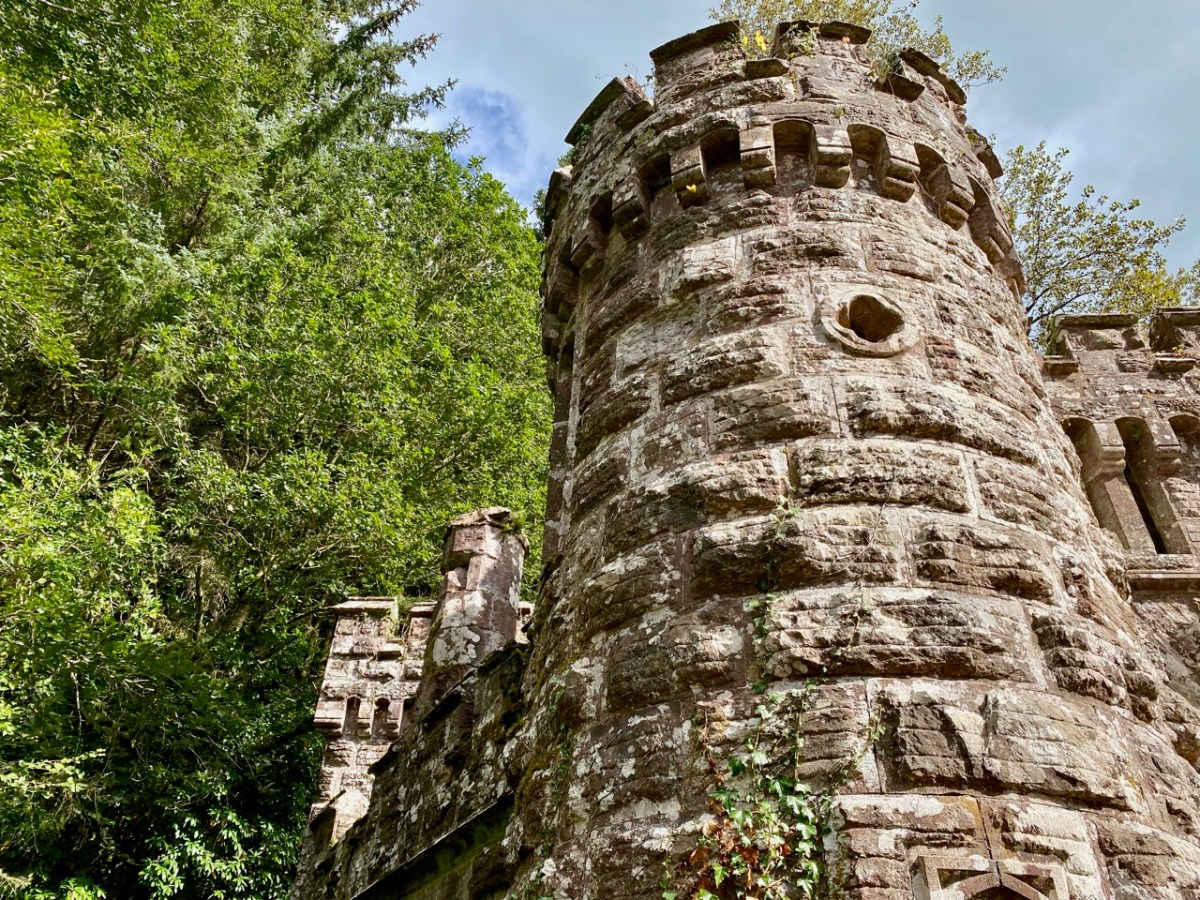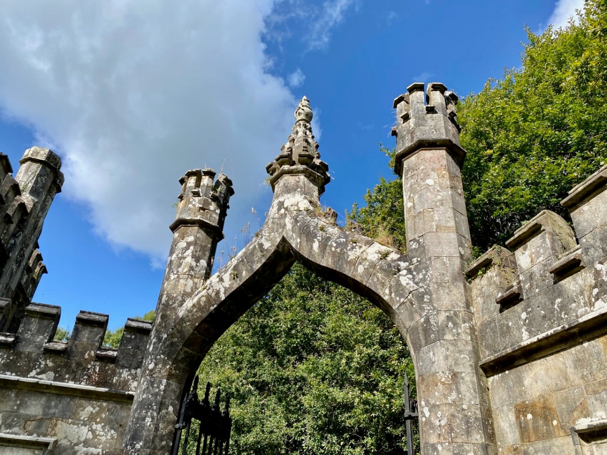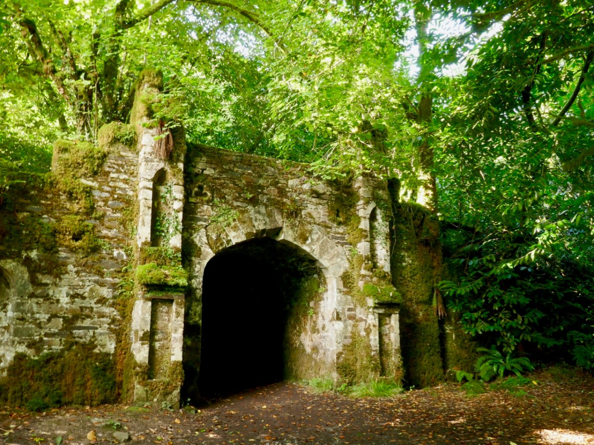 This post might also have been called A Monument to Imprudence because of the story which it encompasses. But, first and foremost, it is a bit of an architectural wonder, and certainly worth the deviation from the motorway if you are travelling between Cork County and Dublin. It will add only 20 minutes to your journey – plus however long you decide to spend walking the publicly accessible woodland to discover the nineteenth-century extravagances of Arthur Kiely, Esq. Leaving the M8 motorway at Fermoy, head east towards Lismore on the R666: you will reach a car park and trailhead for Ballysaggartmore on the left within half an hour. After your visit, find the R668 heading north and rejoin the M8 at Cahir.