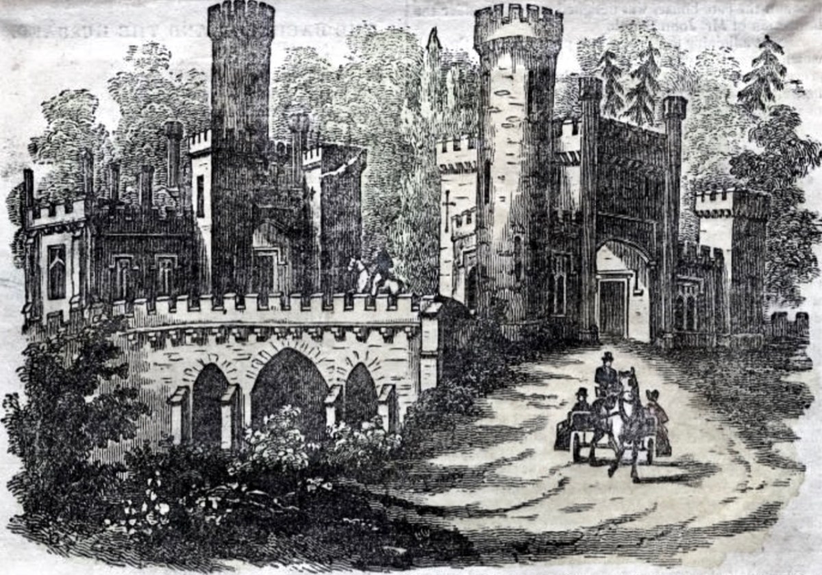The gate-lodge and ‘Towers’ of Ballysaggartmore are remarkable survivors, and represent the sum total of Arthur’s striving to equal his brother’s show of opulence. After the extraordinary towered bridge the carriage drive peters out, and one assumes the money also dissipated. Kiely-Ussher attempted to revive the fortunes of his estate but this centred on evicting tenants in time of scarcity, which only resulted in the lands becoming less productive. The family lived through the famine but were considered notoriously bad landlords. In the 1850s Ballysaggartmore Demense was virtually bankrupt: the house was sold in 1861 and Arthur himself died shortly afterwards.