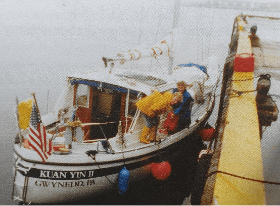 The summary she wrote of her journey stops in Crookhaven (Finola sent me this photo of herself beside the press cutting) but Billy O’Sullivan told me that she stayed in Crookhaven for a week and MacKinnon knows that she sailed eastwards along the South coast of Ireland, up the Irish Sea, through the Caledonian Canal in Scotland and across the North Sea to Sweden where she met up with some friends, Christer Arakangas and his wife who sailed with her in Nova Scotia. She then sailed around the picturesque Stockholm archipelago. Kuan Yinn II suffered some damage on the rocks (she hated rocks!) so when it was repaired, she sold the boat and on her return to Baddeck bought another boat and named it Kuan Yinn III. She continued to sail with Jacinta MacKinnon until finally ending her sailing days in 2004.
