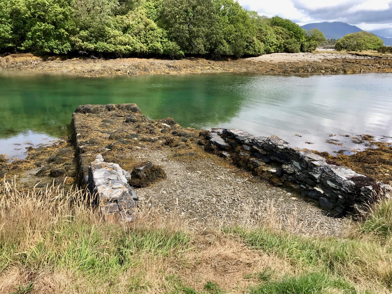 Its central arch and the steps leading to its upper portion remain; but the huge pieces of its eastern wall now lying about show how severely it has suffered from the havoc of war. This wholesale destruction occurred when Dunanore Castle, together with the island, was captured on the 22nd of March, 1601, by Captain Roger Harvey, following on the defeat of the Spaniards at Kinsale. By means of the artillery he planted on the high ground adjoining it, he battered down the eastern wall and compelled the garrison to surrender, for which and other services (as Dr Donovan writes in his “Sketches of Carbery”) he was granted at the time a commission by Lord Deputy Mountjoy as Governor of Carbery.