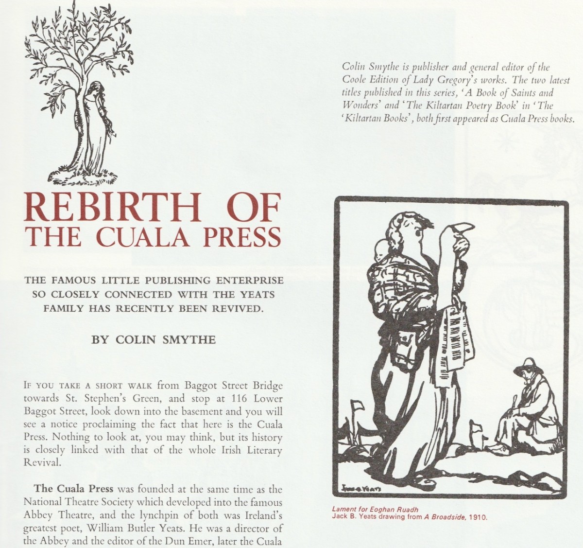 As the page below explains, it was revived by Michael and Anne Yeats, son and daughter of WB Yeats and Georgie Hyde-Lees, along with Liam Miller of the Dolmen Press.