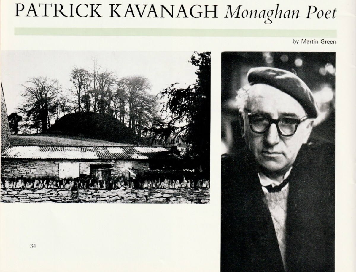 The January-February essay is by Martin Green and is titled Patrick Kavanagh, Monaghan Poet. Martin Green would make a column by himself – but I mustn’t get distracted. Here, he gives a brief description of Kavanagh’s life and considers how his rural Irish roots informed all his writings. He picks out Kavanagh’s autobiographical The Green Fool for special praise.