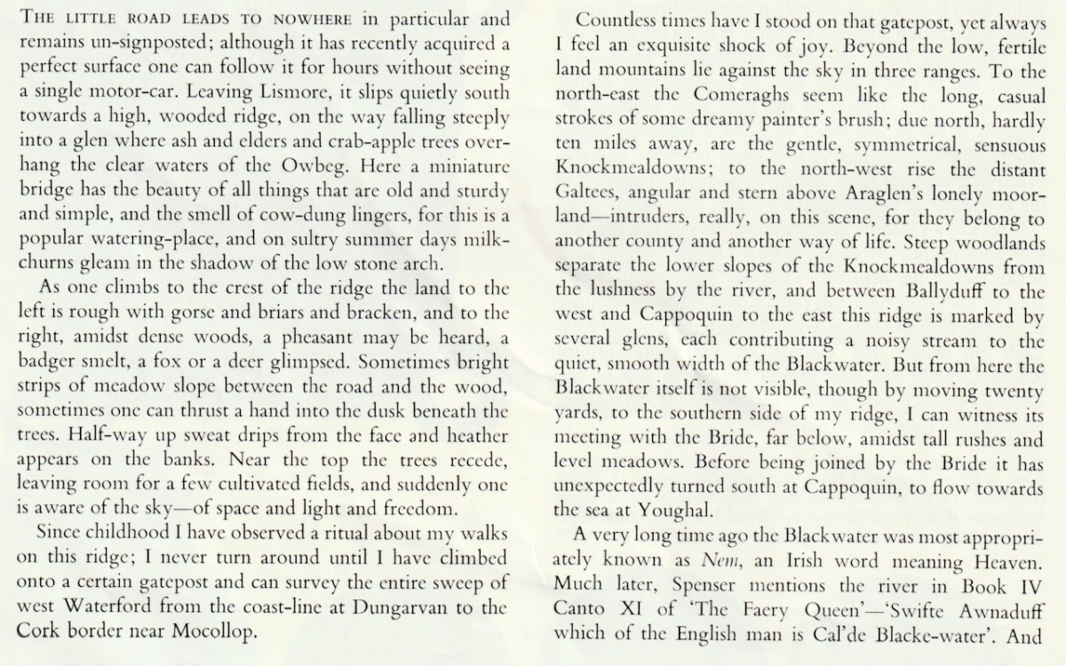 Dervla’s essay, Seen From a Gatepost: A View of West Waterford, is about this very place. In it you come to understand how, not unlike Kavanagh, her rootedness in an Irish rural landscape gave her that sense of security from which she could explore the world.
