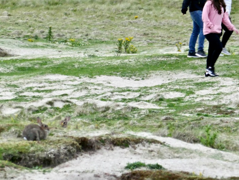 We wanted to just sit and observe, so we found a comfortable spot where we had a view over the warren. They were everywhere! They weren’t unduly perturbed by humans, although they disappeared quickly when dogs came sniffing around. In the face of all the challenges rabbits face in Ireland, it felt good to be in a place where they seemed to be in a long-term relationship with their habitat.