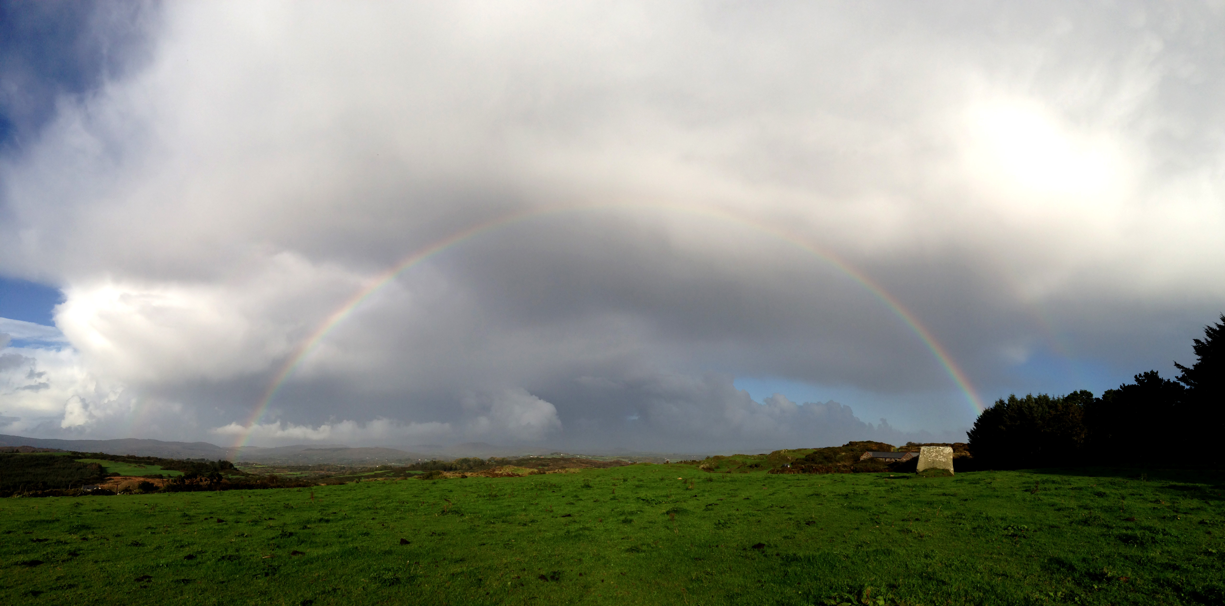 Mines; standing stones; Fairy Forts; medieval castles and manuscripts; holy wells; mussel farming; lobsters, shrimps et al… We are surrounded by evidence of human endeavour going back thousands of years. Through it all the natural world continues regardless: the sun rises, the moon wanes, storms blow in, seasons turn; the tides bring daily changes to the shoreline – and the rainbows are our evanescent doorstep miracles…