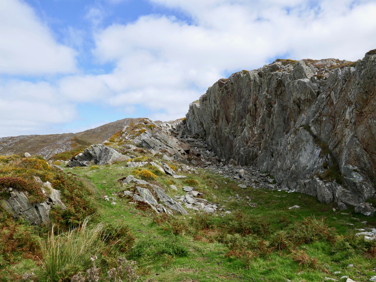 The real surprise for us came when we walked east from the mine site, along the side of a valley running up from the sea. We hadn’t expected the ruggedness, the colour and the contours of what turned out to be a very special, and quite hidden, part of our Mizen Peninsula.